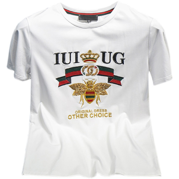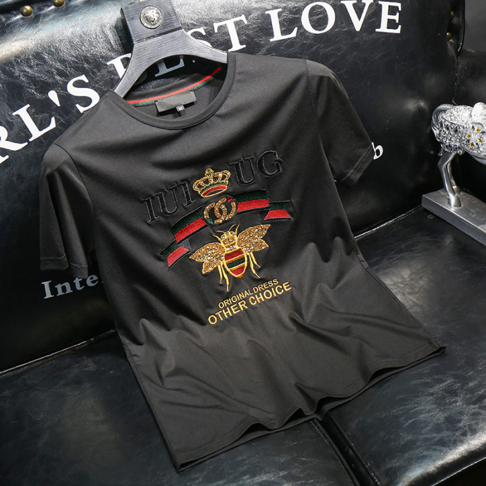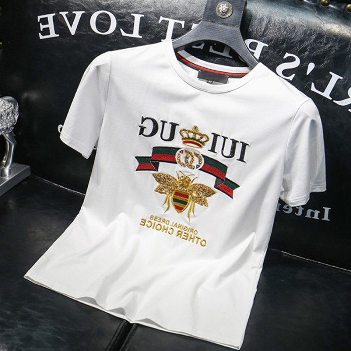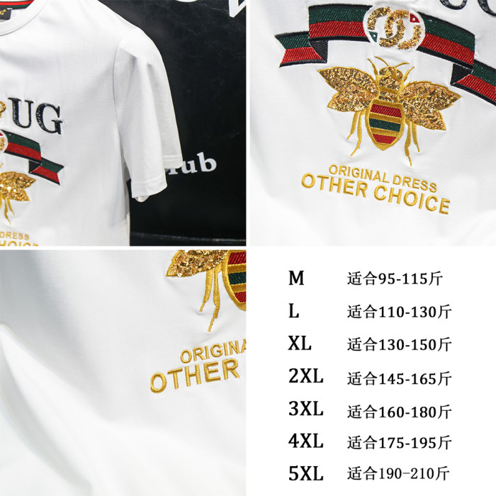 歐洲站夏季新款大碼男t恤刺綉短袖潮牌小蜜蜂男體桖衫絲光棉亮片