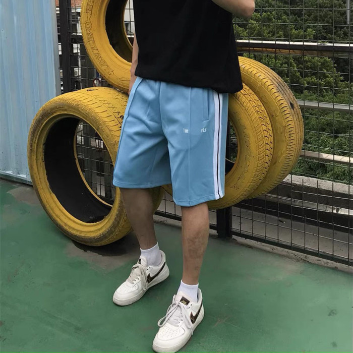 天使新款休閒運動短褲男女透氣微彈速乾側邊織帶彩虹配色褲腰抽繩
