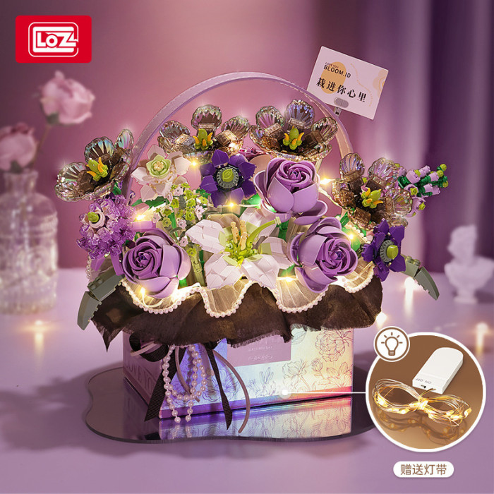loz積木花籃1951玫瑰花積木擺件幻彩盆景裝飾拼裝玩具禮盒生日禮