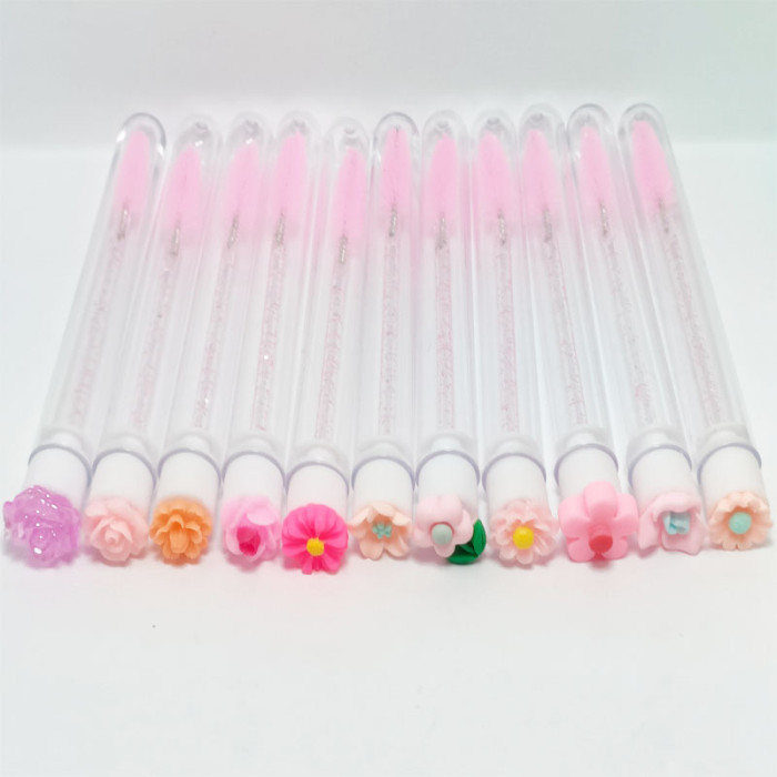 花系獨立管裝一次性睫毛刷化妝刷眉刷透明管嫁接假睫毛刷試管50支