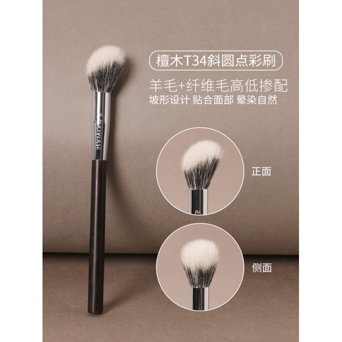逆齡檀木T34斜坡點彩刷腮紅刷修容刷動物毛超柔軟新手可攜式化妝刷