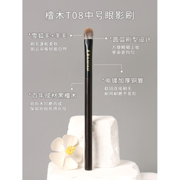 逆齡檀木T08中號眼影刷柔軟可攜式初學者手工超軟動物毛化妝刷