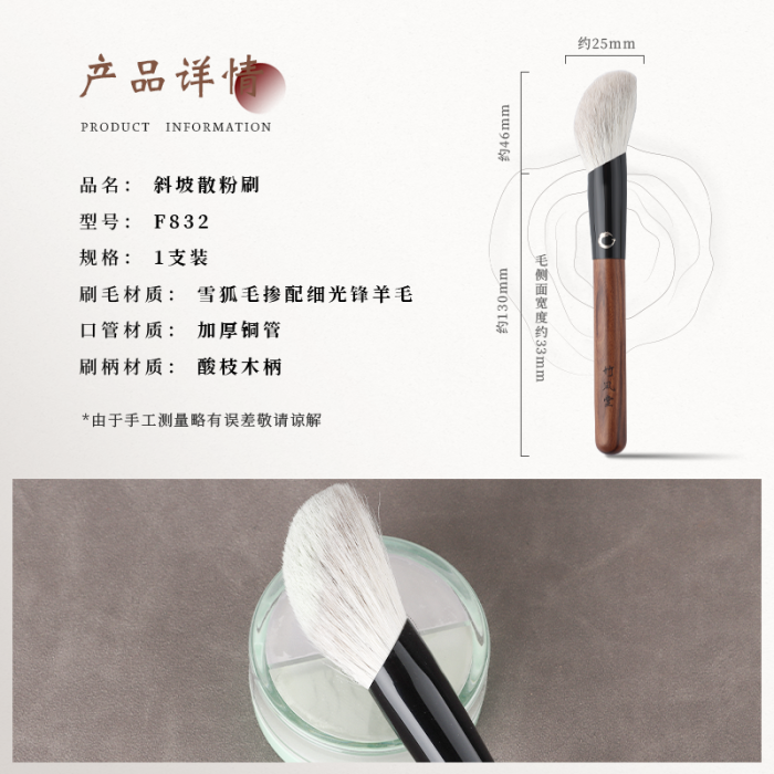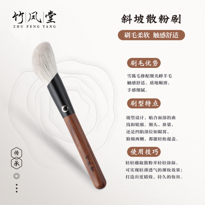 竹鳳堂化妝刷雛鳳F832斜坡散粉刷大號超大蓬松定妝刷腮紅刷動物毛