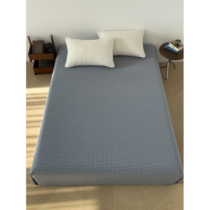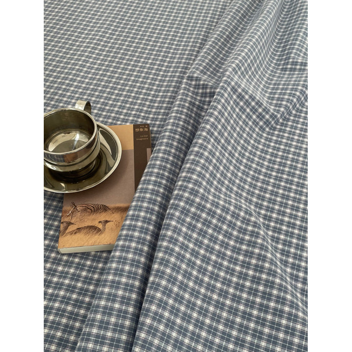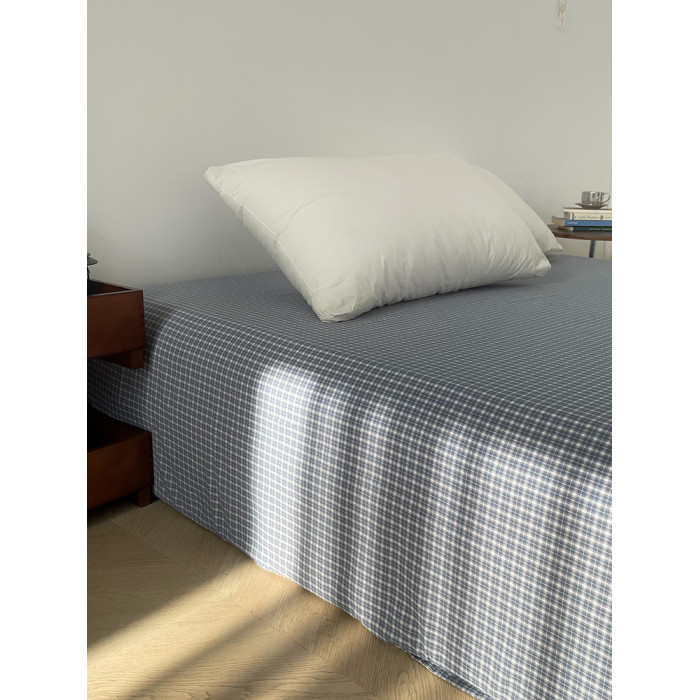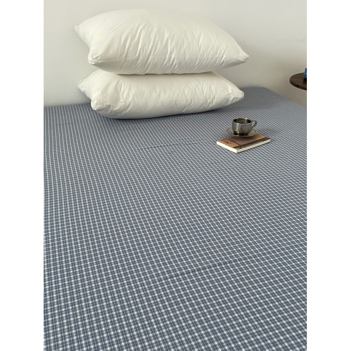 睡前故事 灰藍格子小粗布全棉床單床笠懷舊復古系100棉單件藍色調