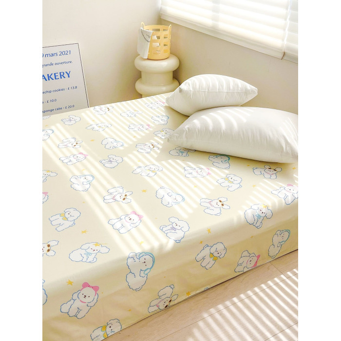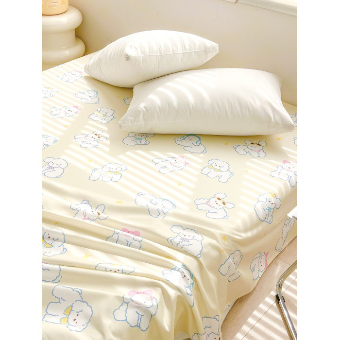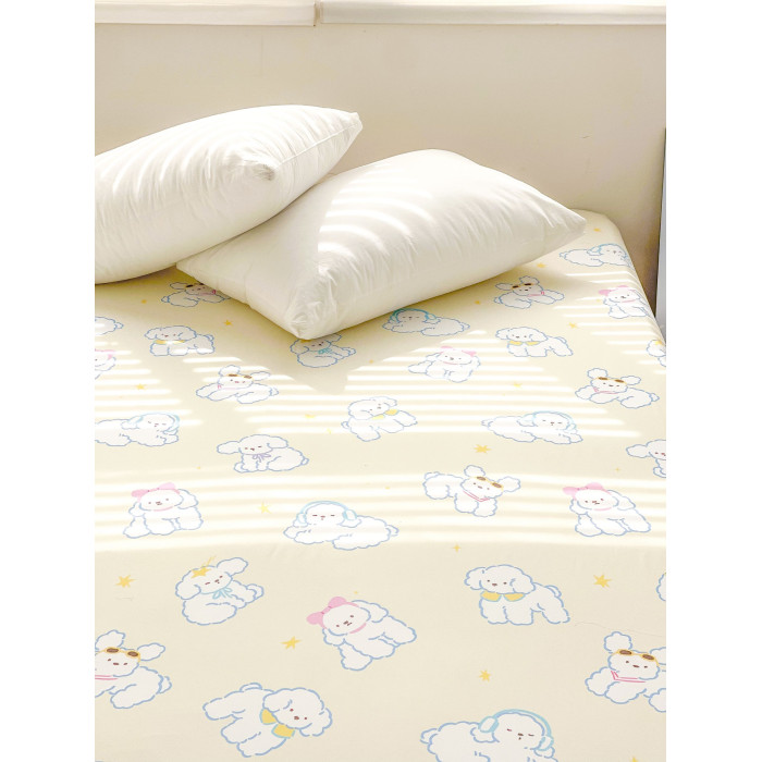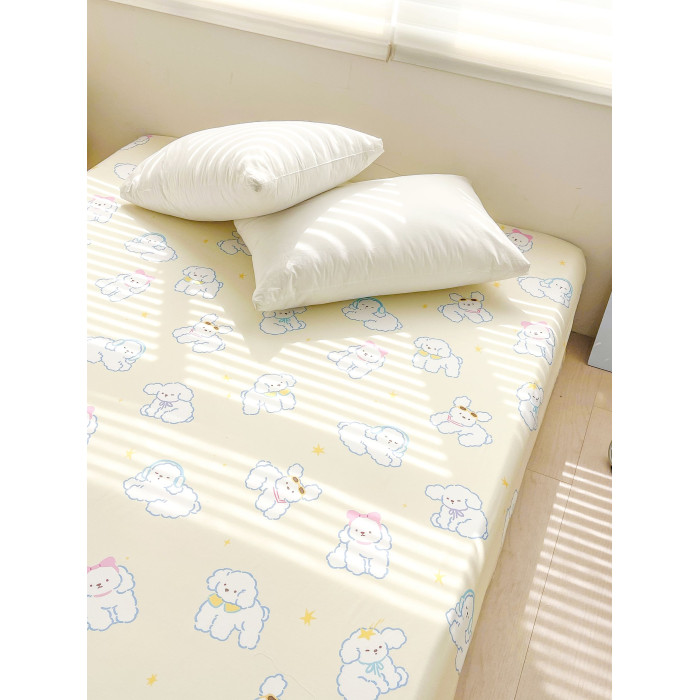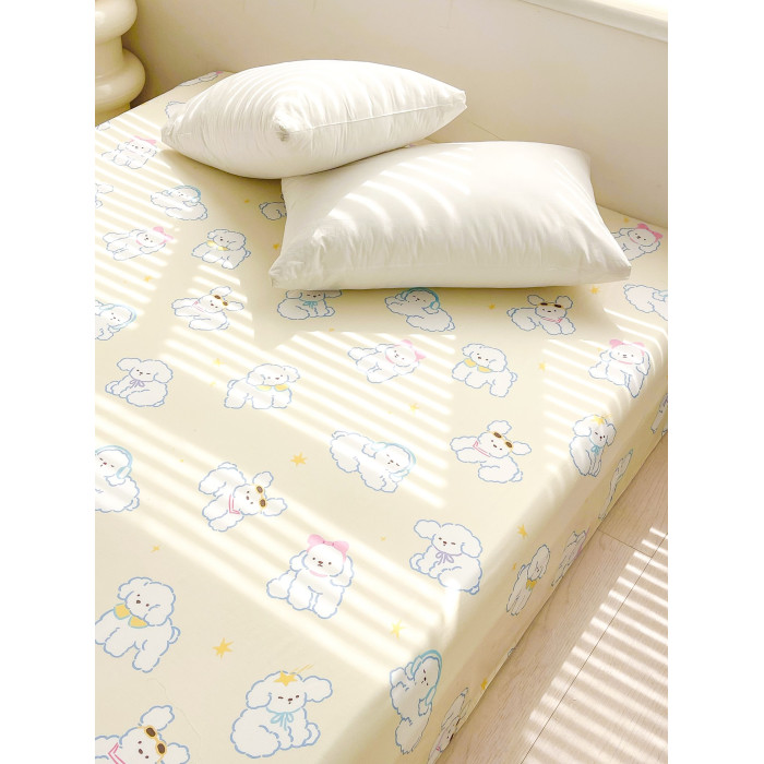 黃油比熊 原創全棉床單純棉床笠單件 線條小狗可愛簡單奶油色系