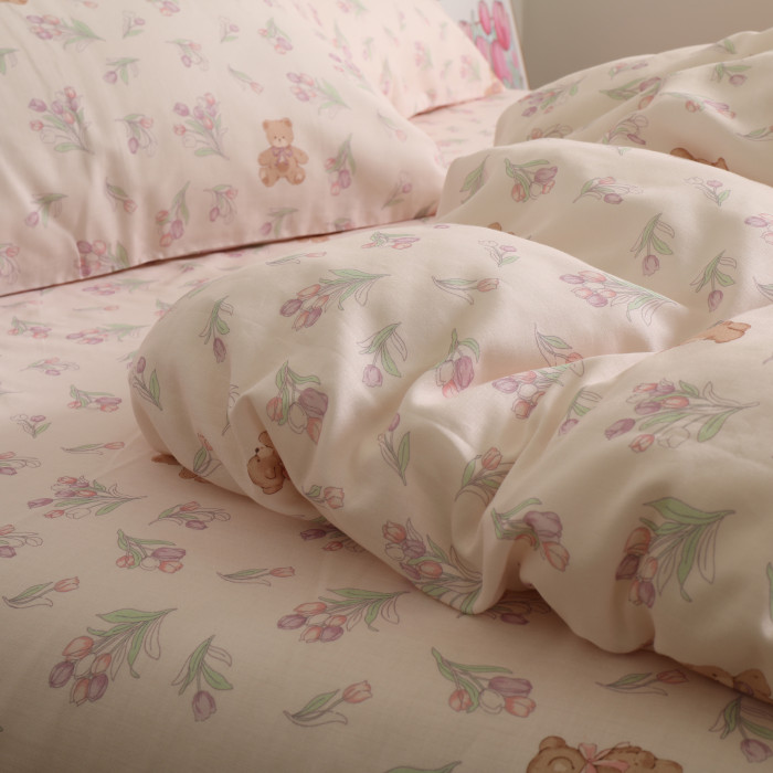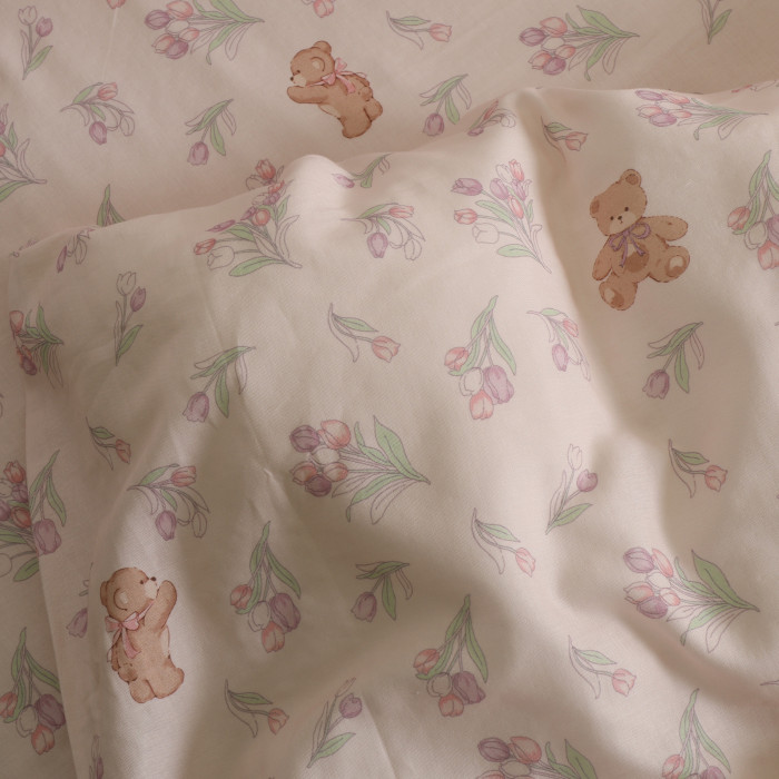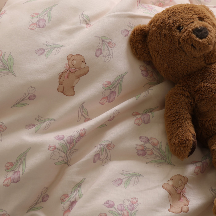 鬱金香小熊可愛夏季寶寶兒童床單單件純棉100全棉母嬰級a類雙層紗
