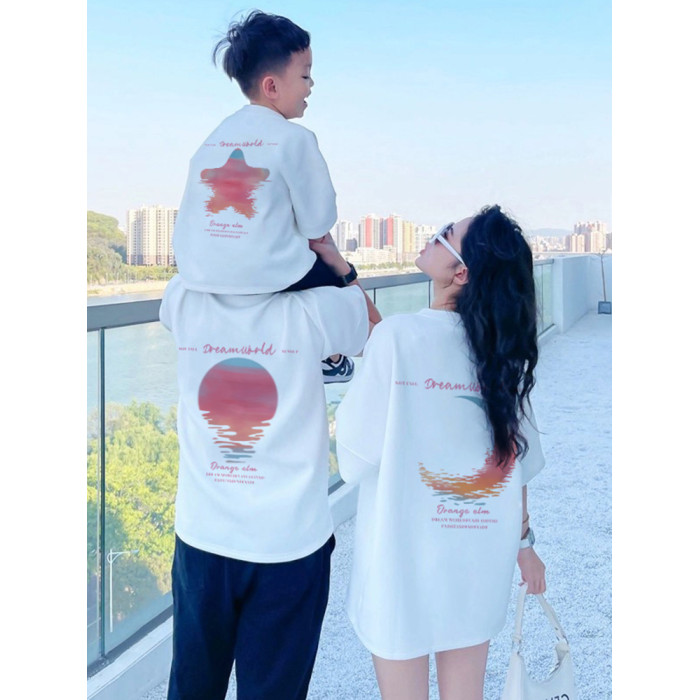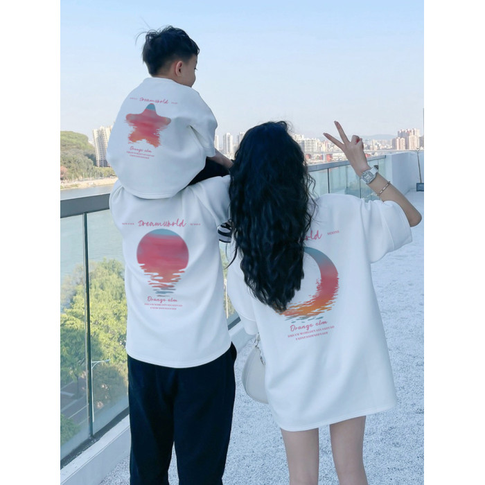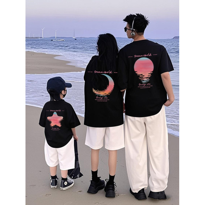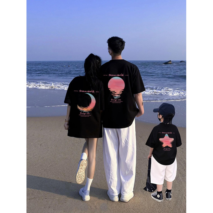 英國Next kiss親子裝一家三四口短袖t恤夏2025超火多巴胺兒童上衣