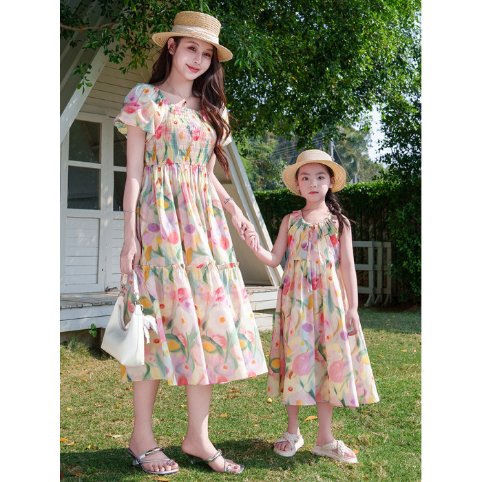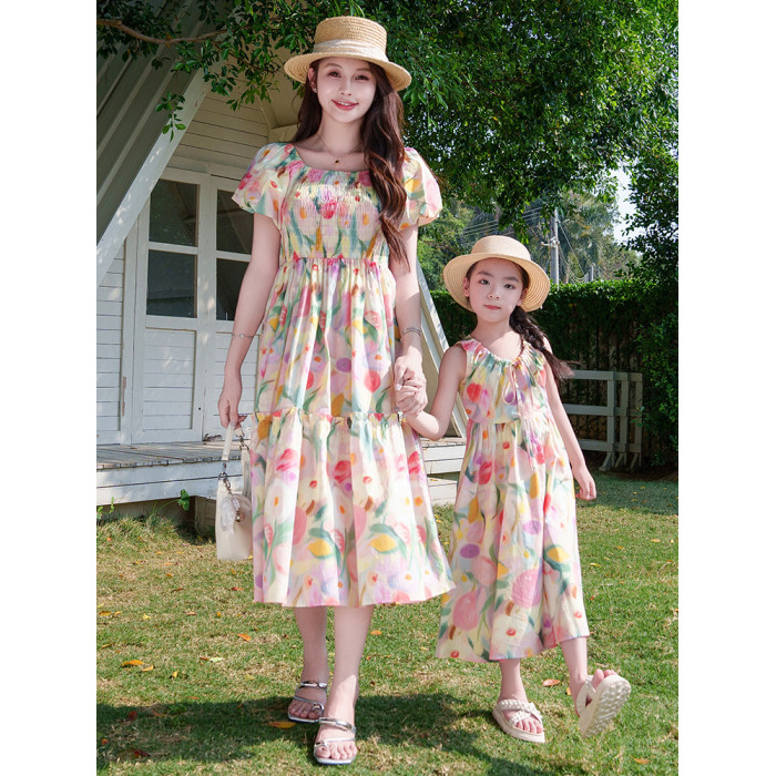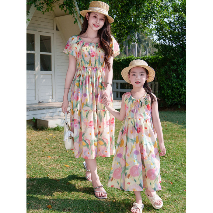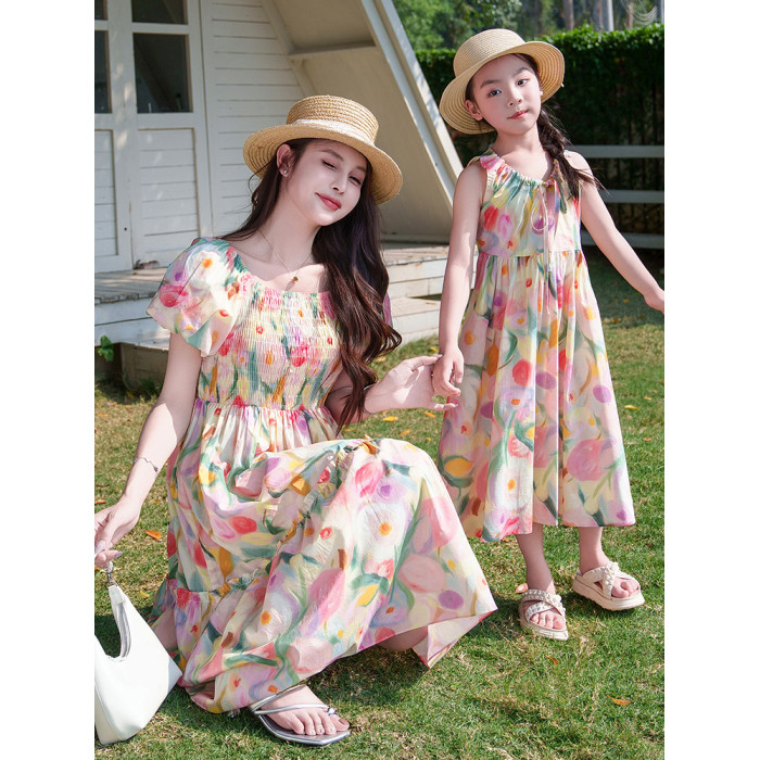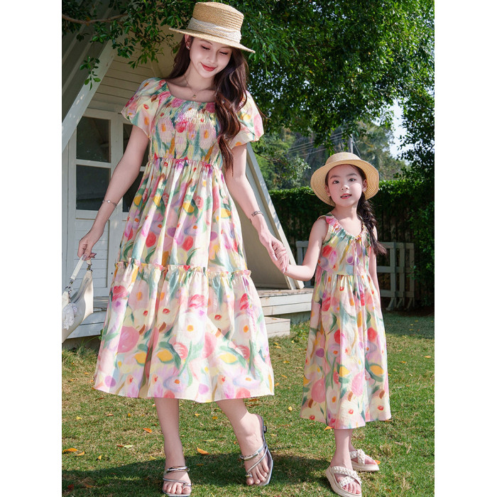 親子裝2025新款夏季連衣裙洋氣沙灘海邊度假風高級感母女裙子夏天