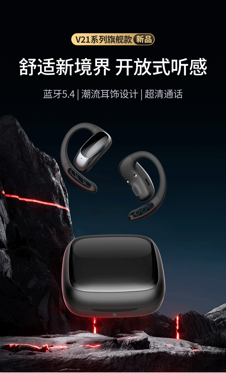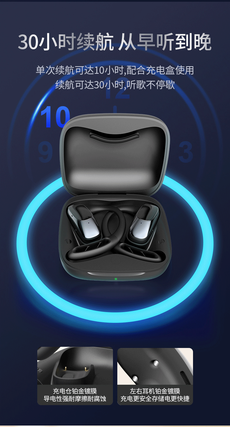 新款掛耳佩戴不入耳帶充電倉無線藍牙耳機OWS外放式耳機