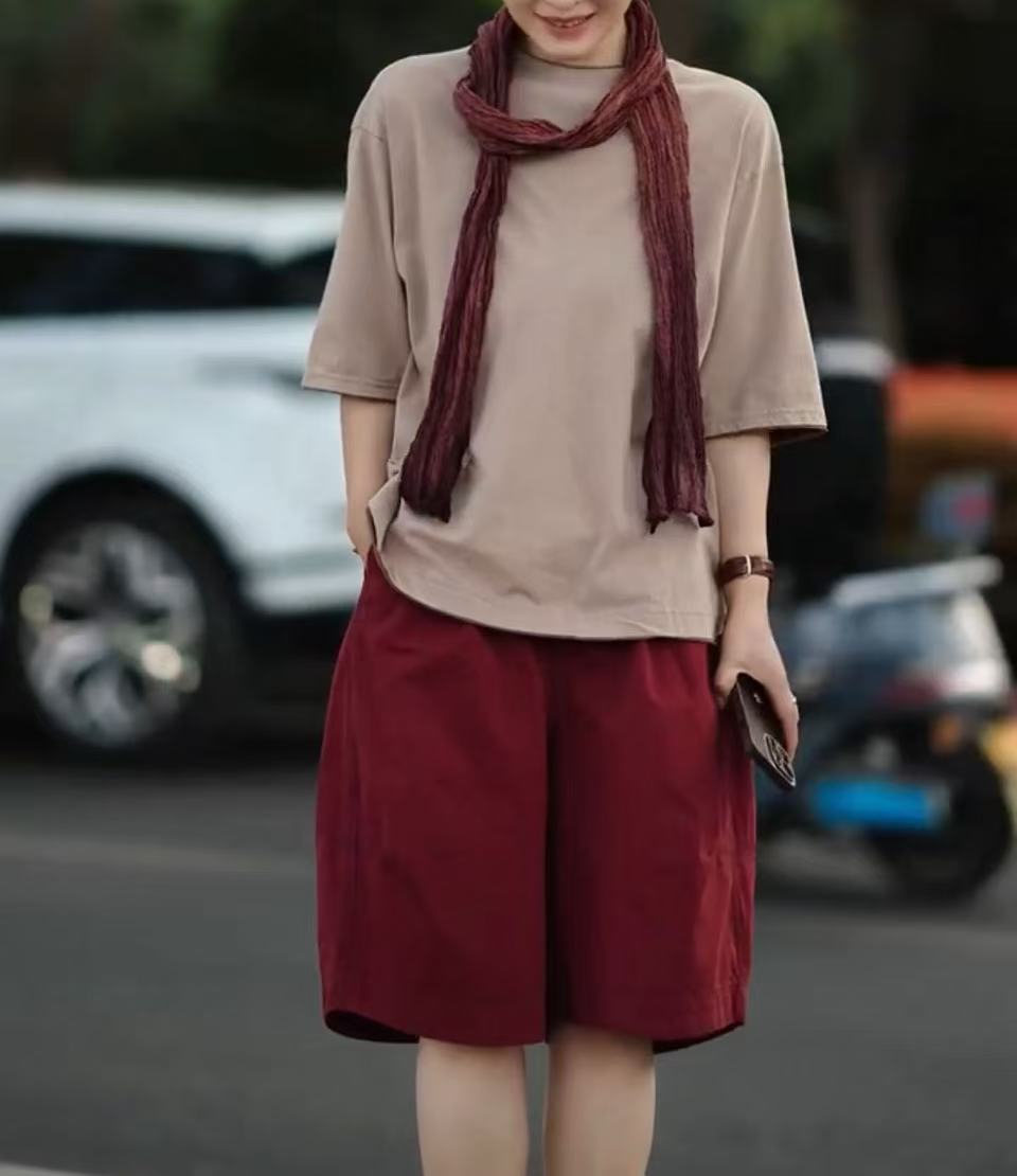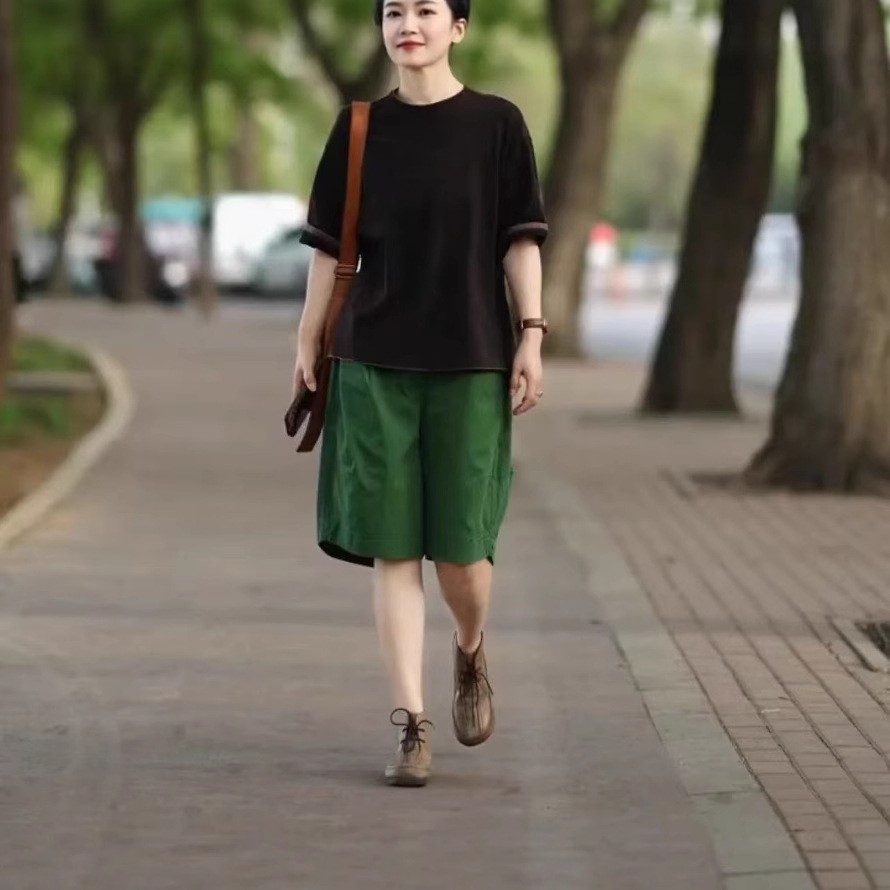 25358大愛美依緣2025夏季新款寬松圓領顯瘦T恤休閒高腰五分短褲女