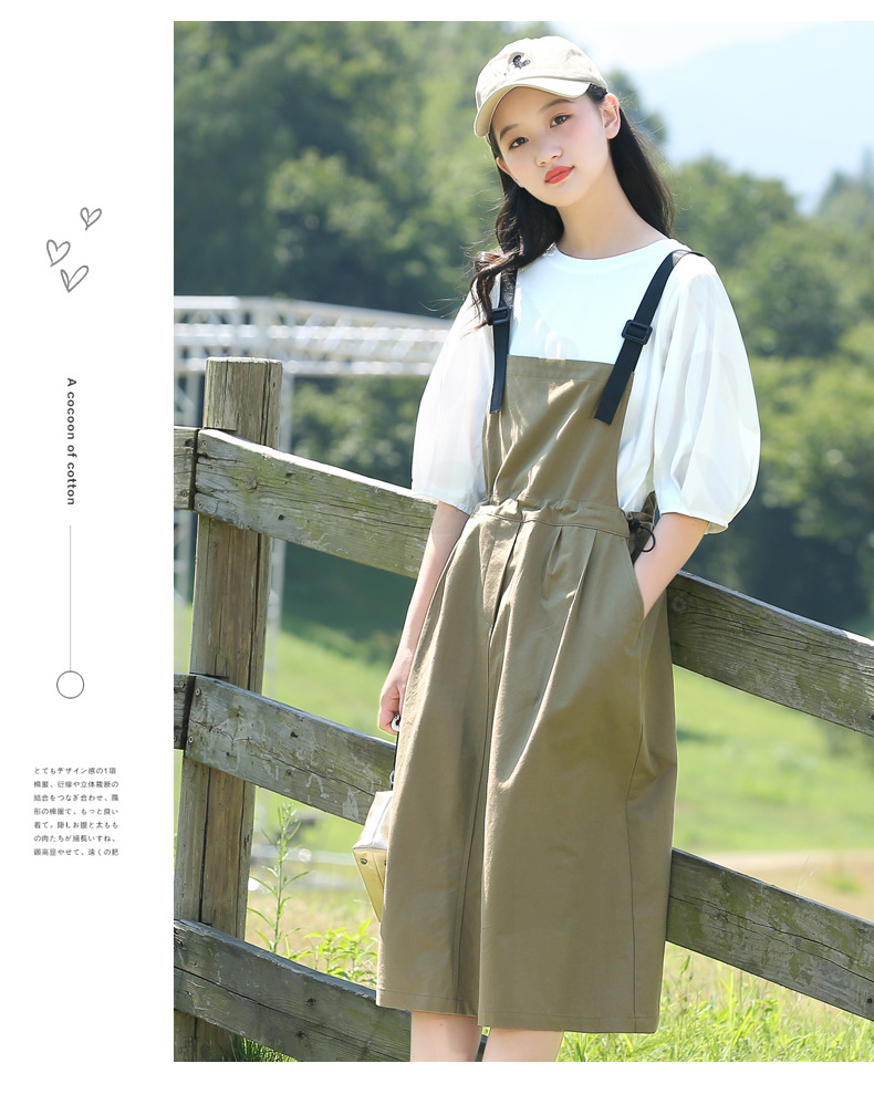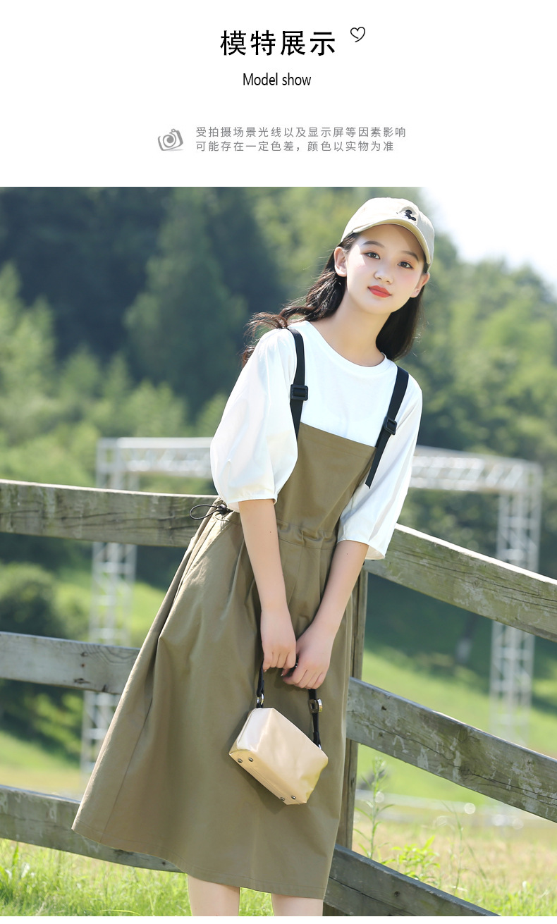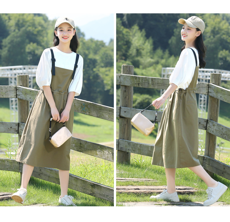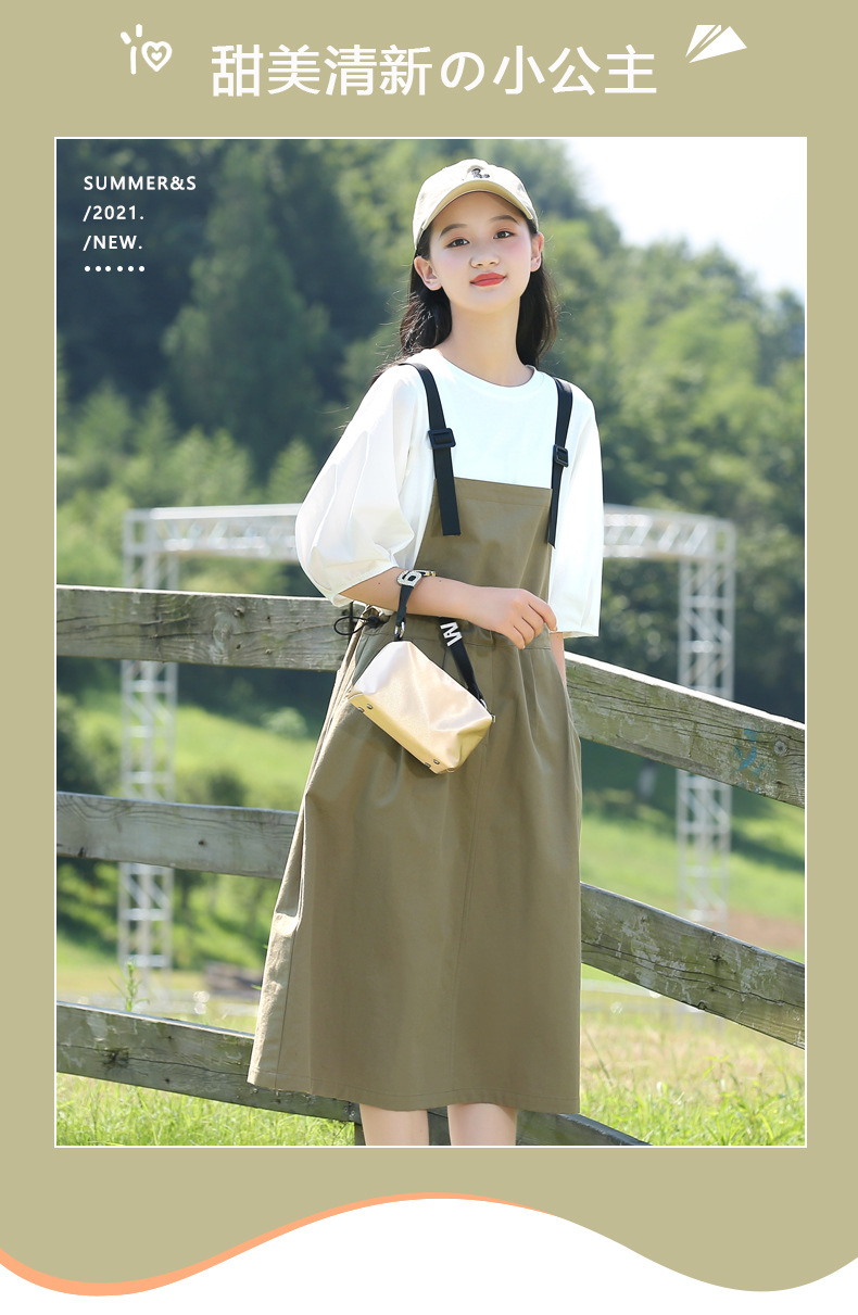 新212106初中學生秋裝背帶裙套裝少女大童高中生夏裝連衣裙兩件套