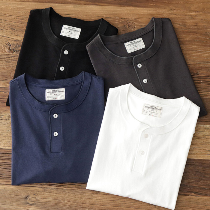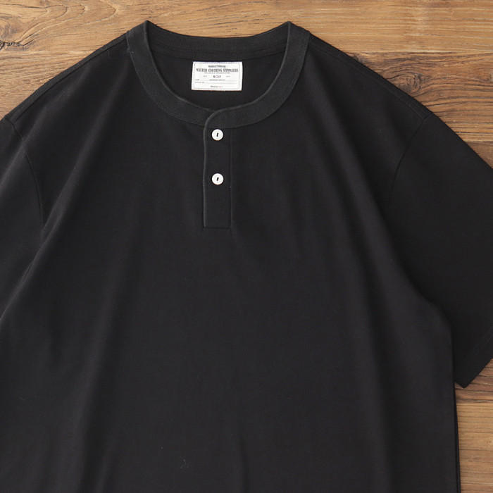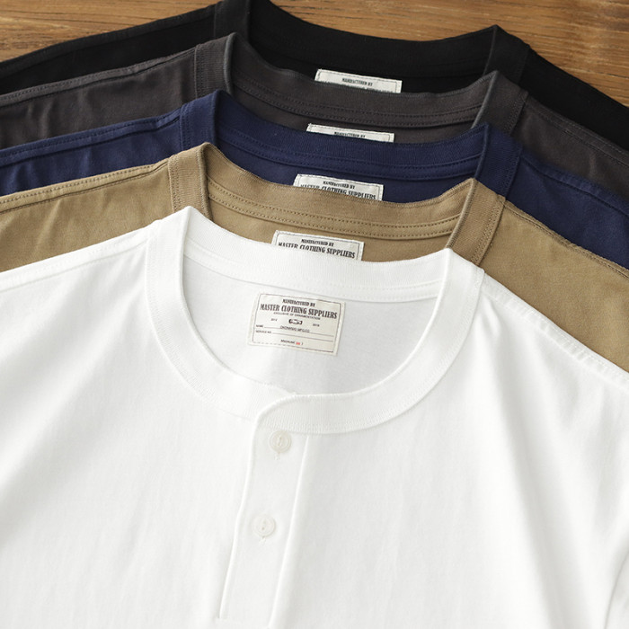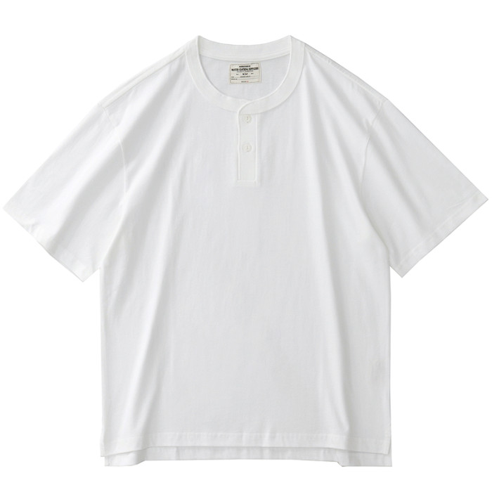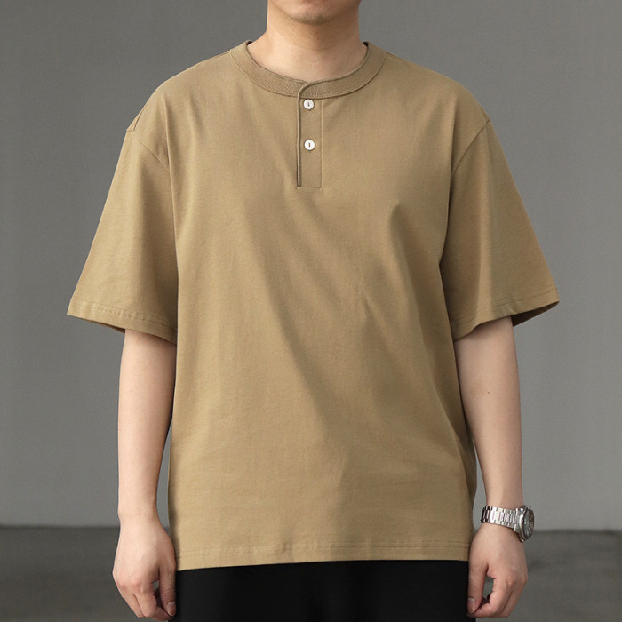 寬松款重磅亨利衫短袖男t恤夏季美式復古純棉大碼休閒半袖體恤男