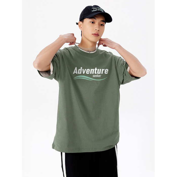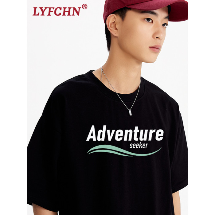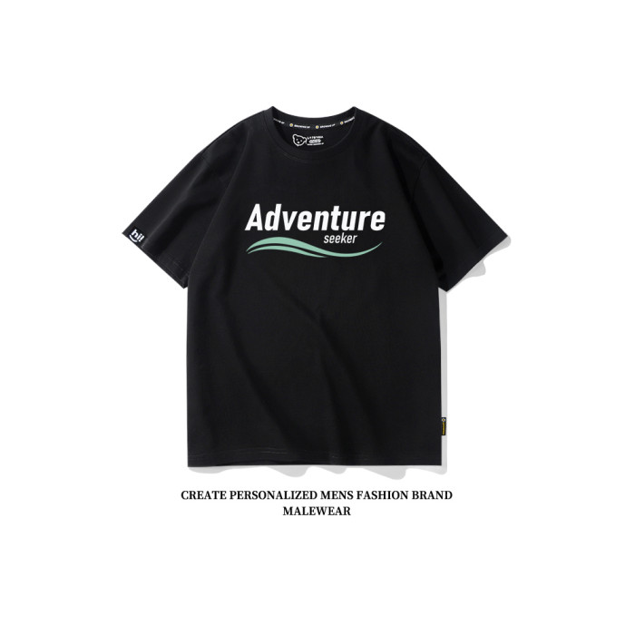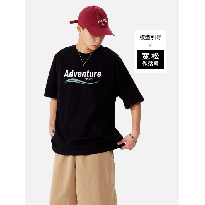 t恤衫重磅半袖夏季上衣字母簡約運動學生潮流寬松黑色短袖男t恤