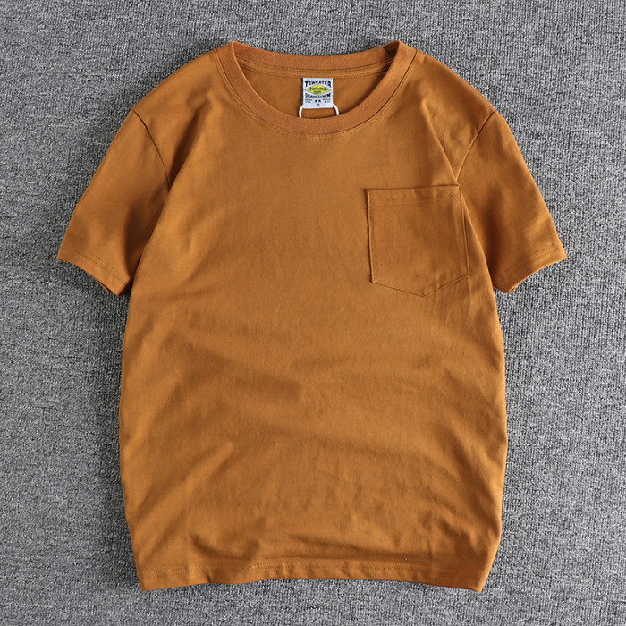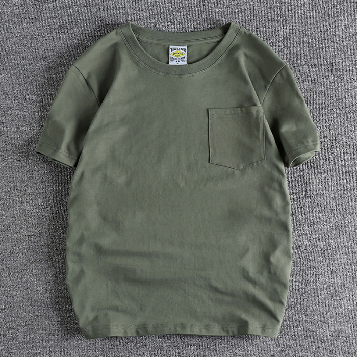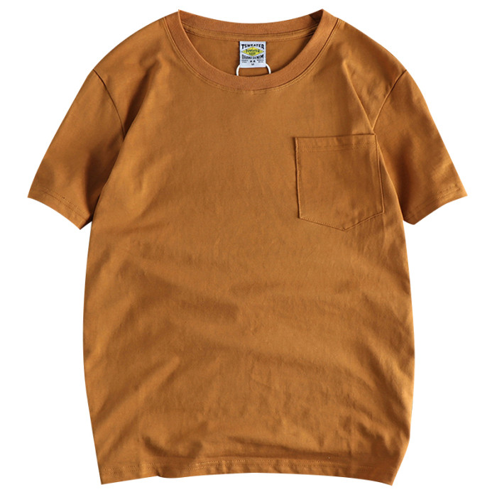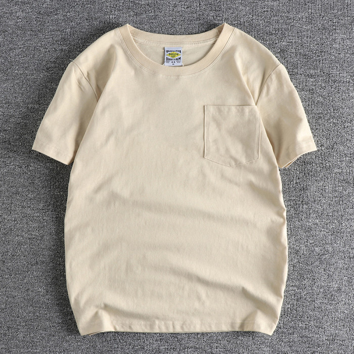多色可選 荷蘭風簡約純色口袋設計重磅水洗全棉短袖男t恤舒適半袖
