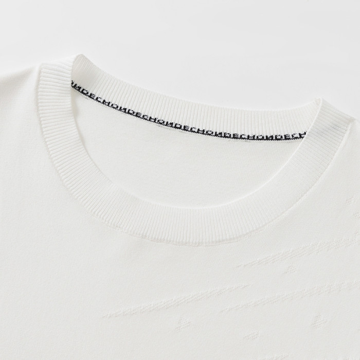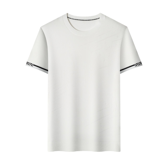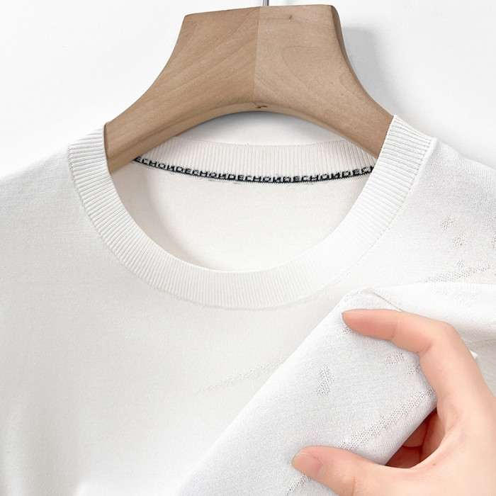 沐羊冰絲針織短袖男t恤夏季薄款純色時尚圓領修身打底半袖上衣