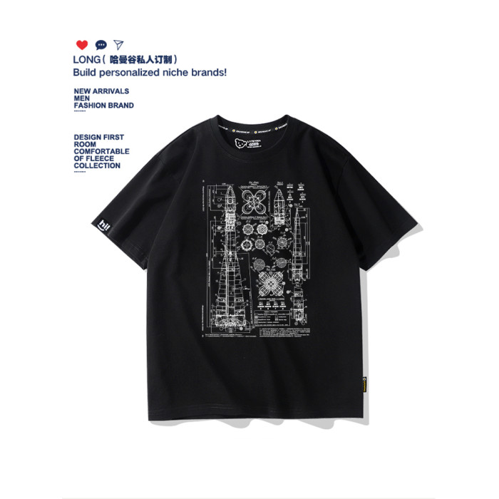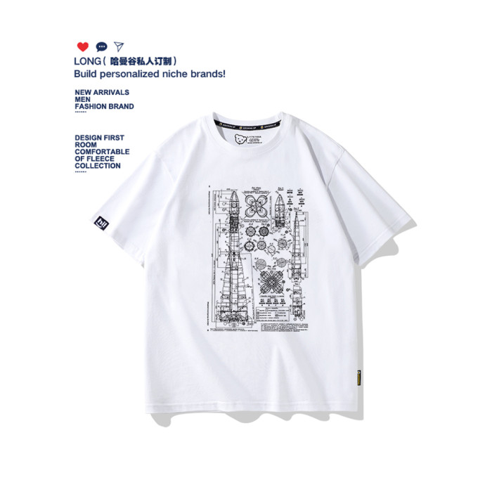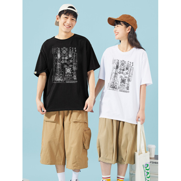 東方號太空飛船結搆圖宇宙探索夏裝寬松純棉短袖男T恤航天宇航侷