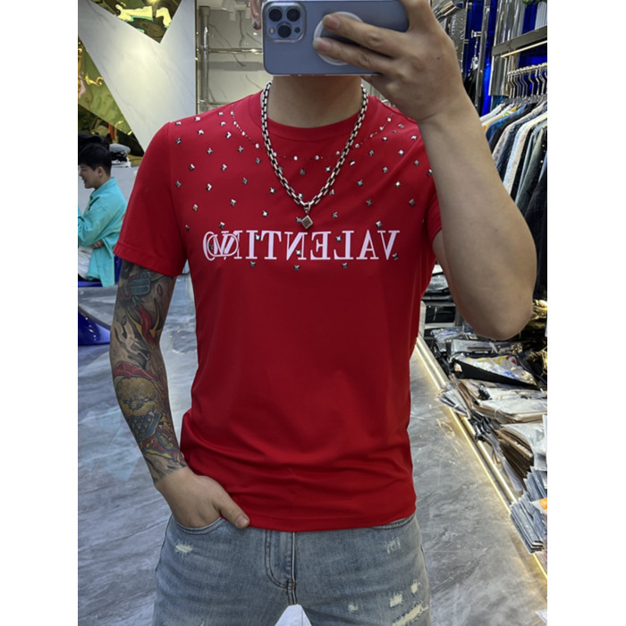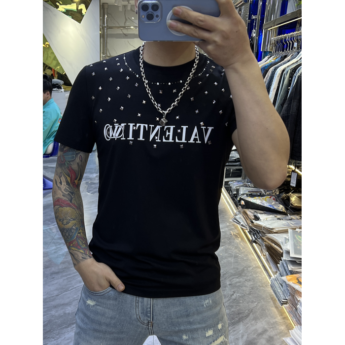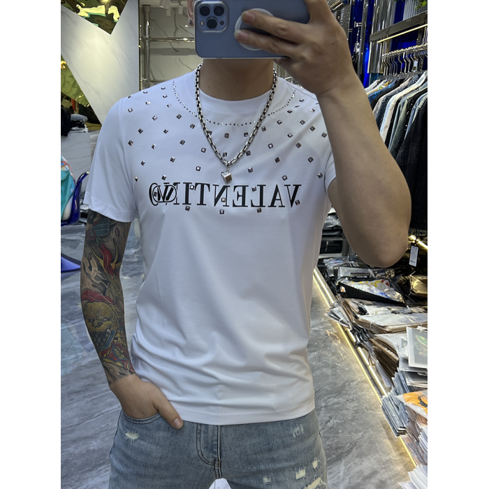 2024夏季潮牌柳丁燙鑽男T恤短袖圓領絲光棉青年半袖體恤個性上衣
