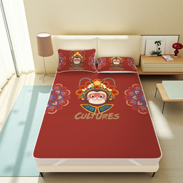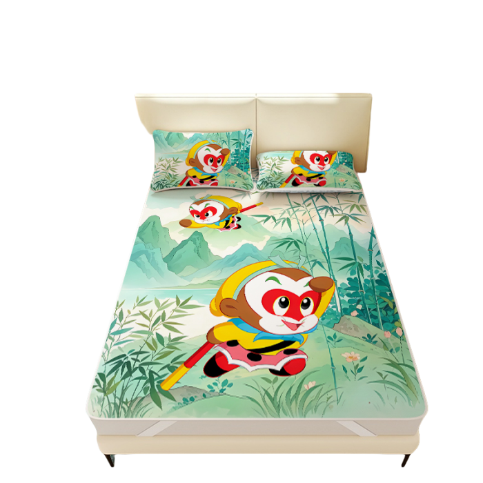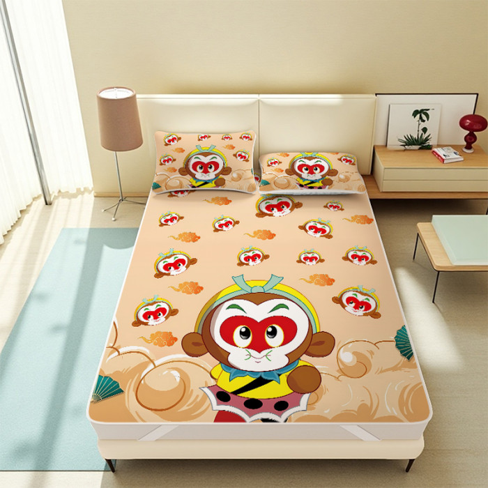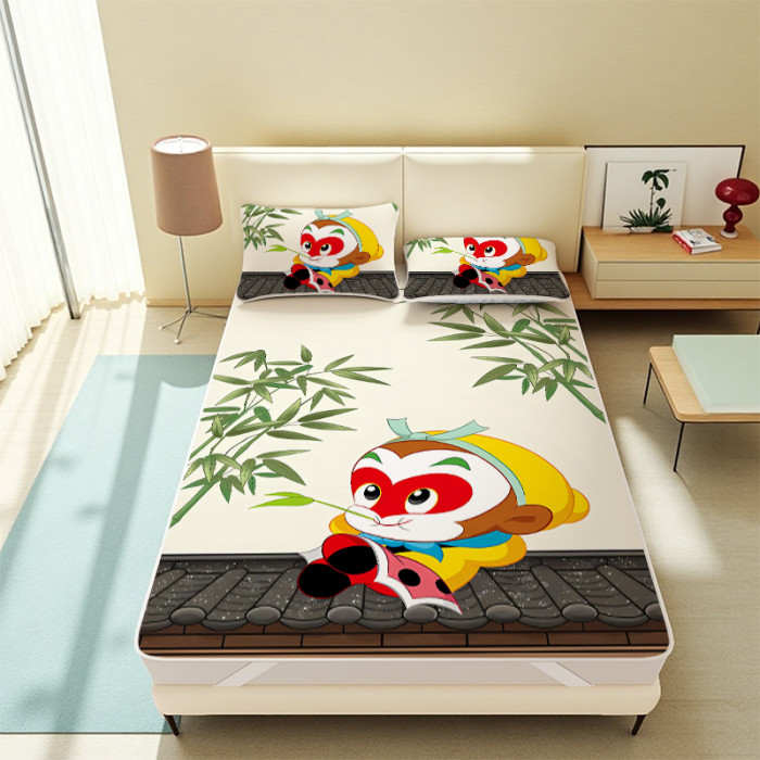 卡通Q版齊天大聖孫悟空柔軟涼蓆兒童學生居家可折曡可機洗冰絲蓆