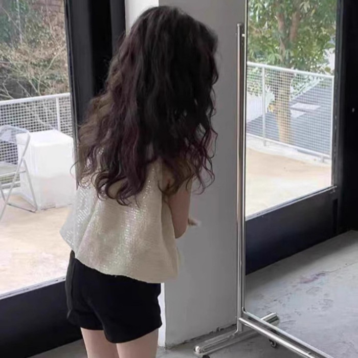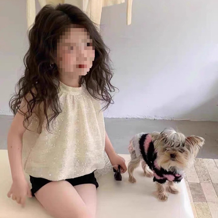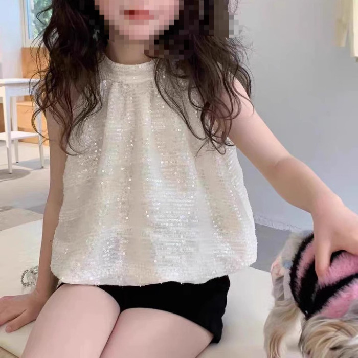 女童洋氣亮片掛脖背心夏裝新款寶寶氣質小香風吊帶上衣潮0100A008