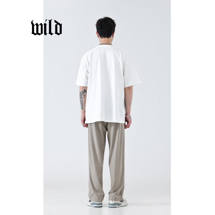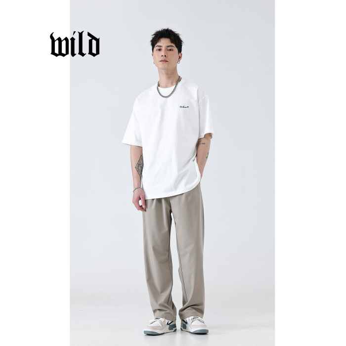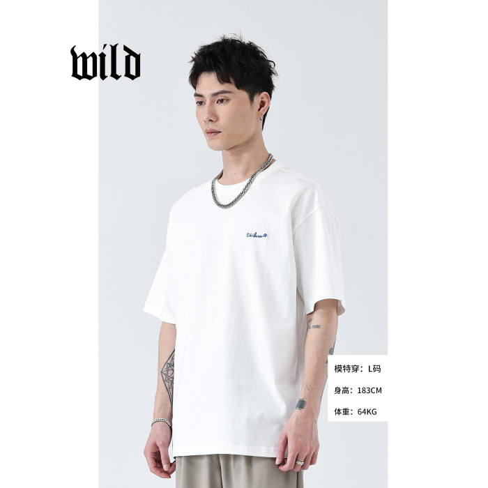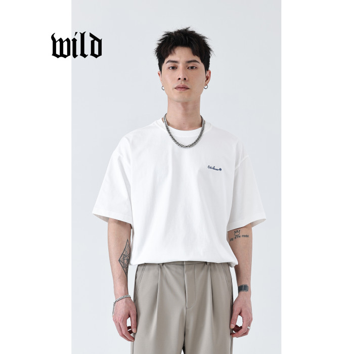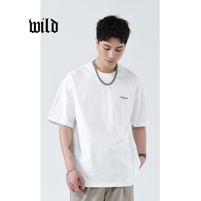 白色純棉短袖男t恤夏季新款美式潮流正肩寬松休閒高級感 圓領體恤