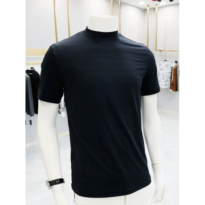 小高領短袖男T恤2025夏季新款運動健身上衣速乾冰絲潮牌美式半袖