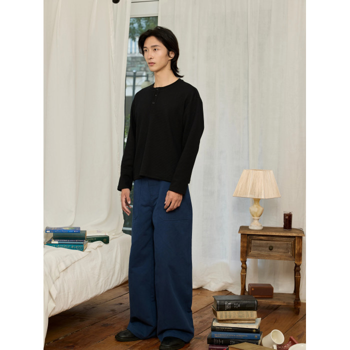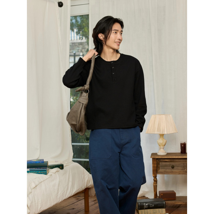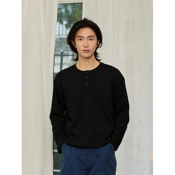 華夫格亨利領長袖*4JUNKS百搭老錢polo衫長袖男t恤打底衫cleanfit