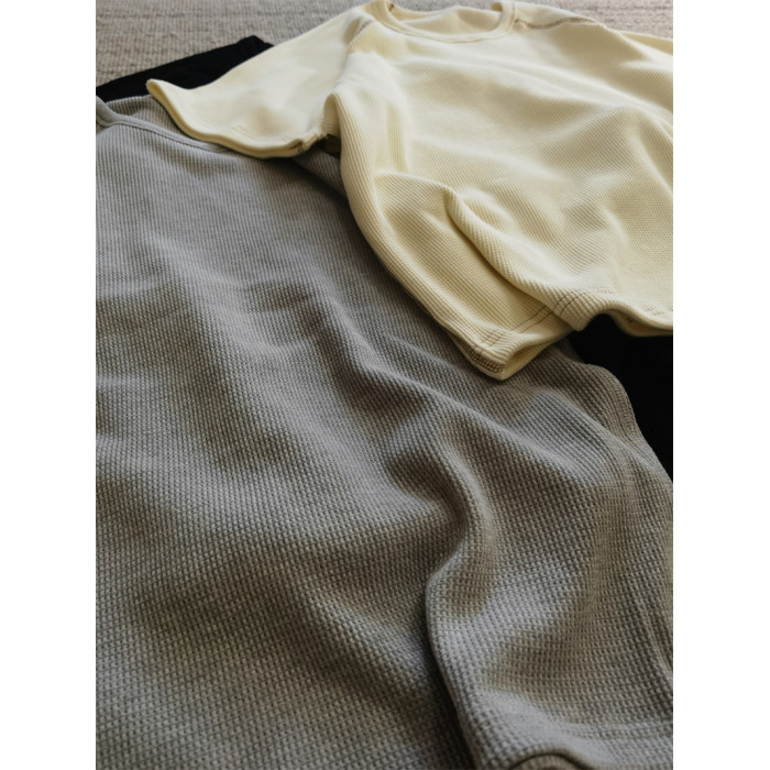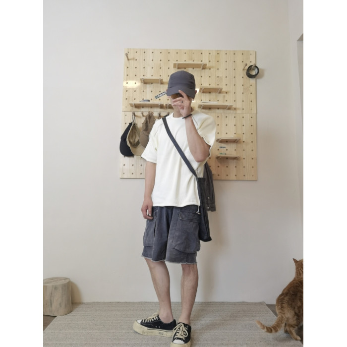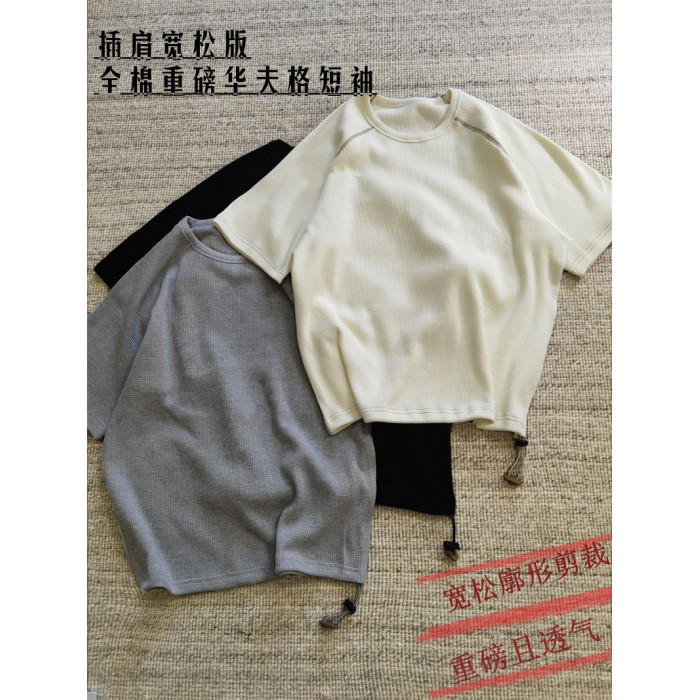 SONOFLOONG重磅全棉華夫格短袖男t恤機能透氣寬松插肩袖圓領tee潮