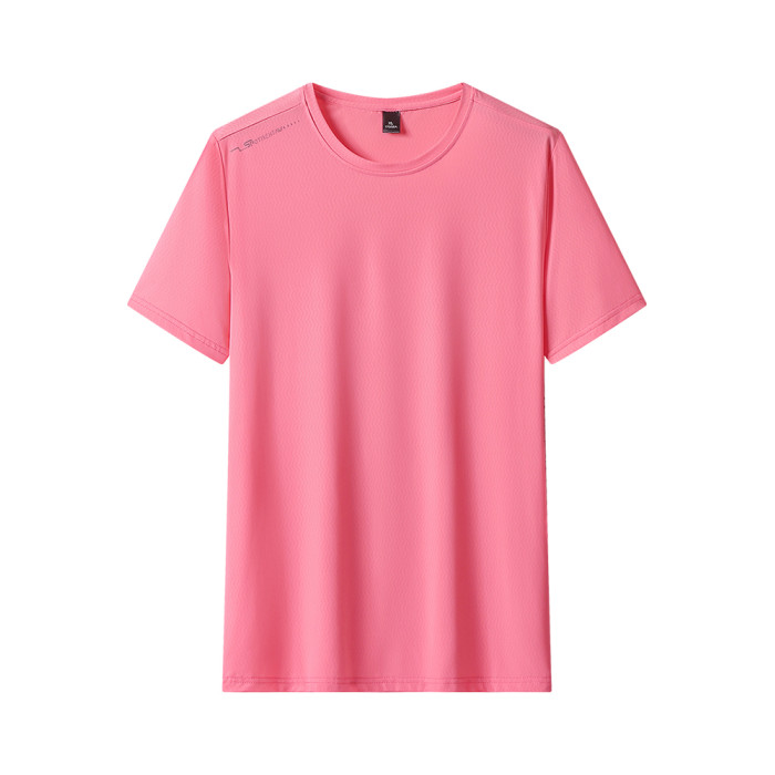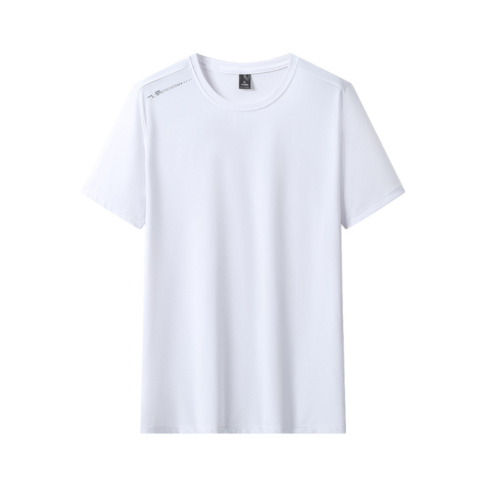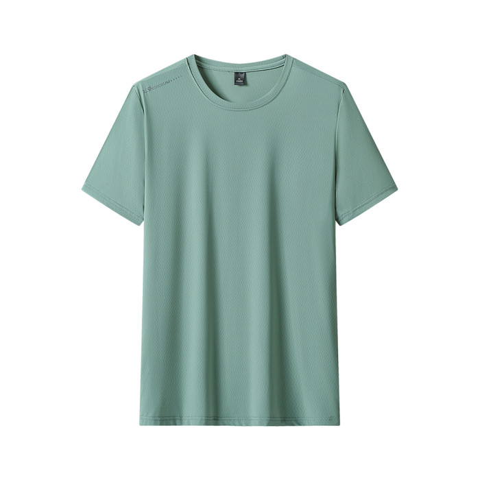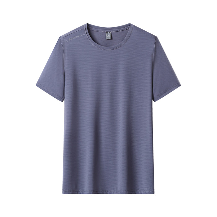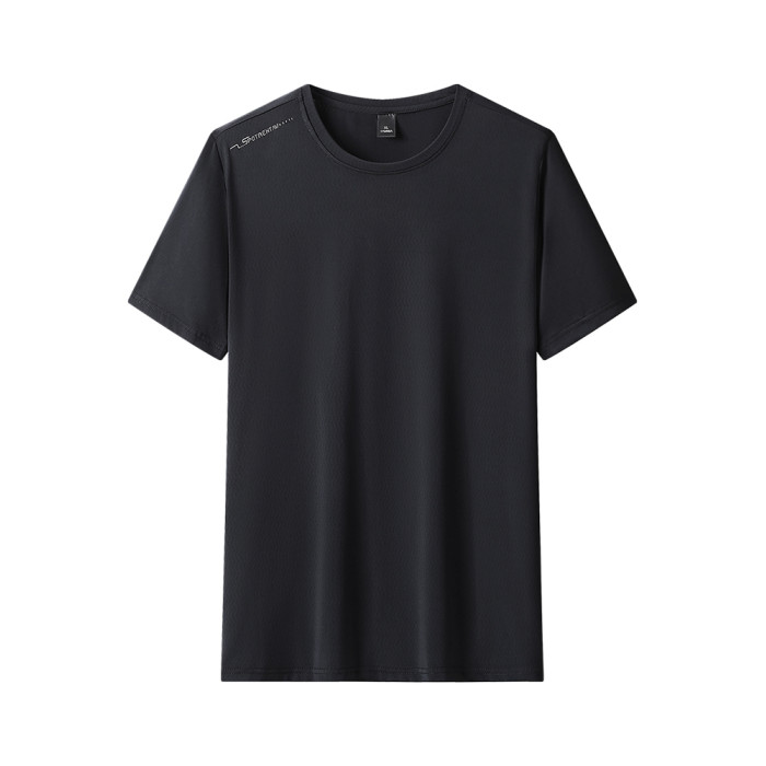 夏季透氣圓領大碼寬松休閒短袖男t恤冰絲速乾薄款男士胖人彈力T恤