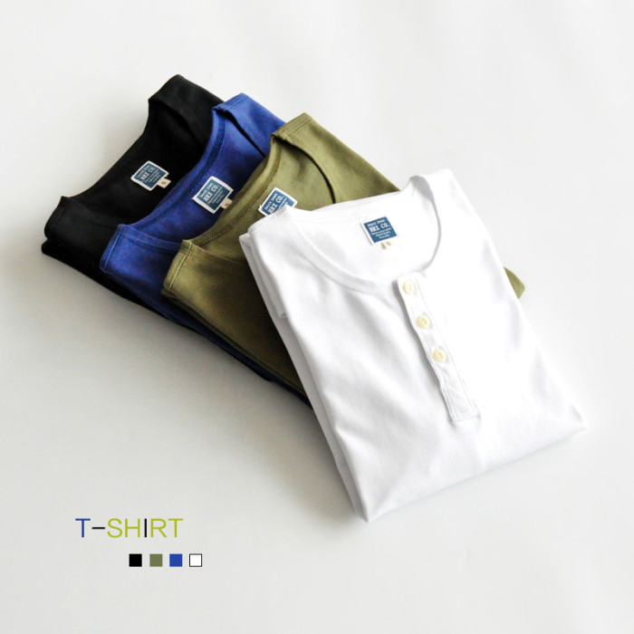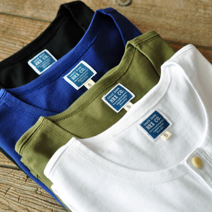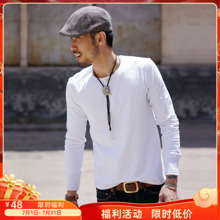 沾醬 厚料長袖t恤 男 亨利領 長袖 純棉 純色白色男T恤 圓領T恤