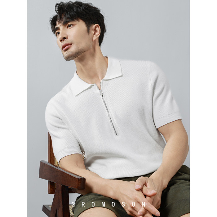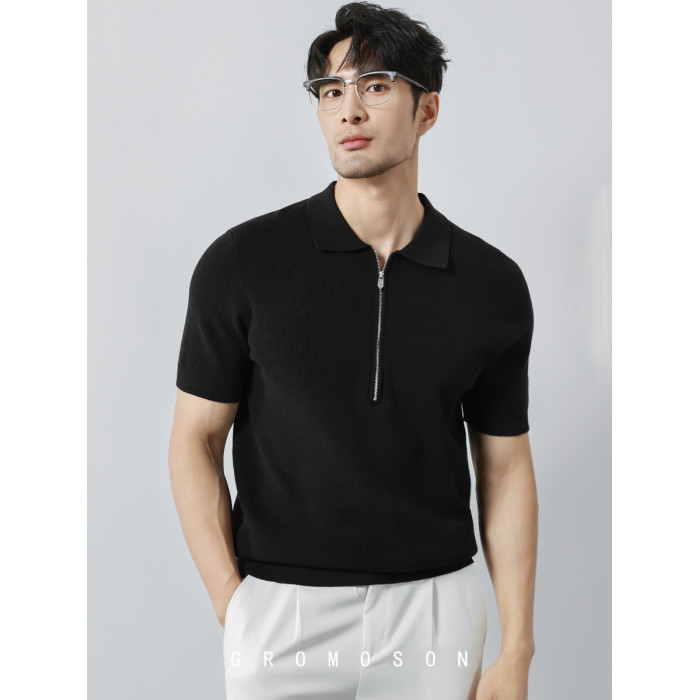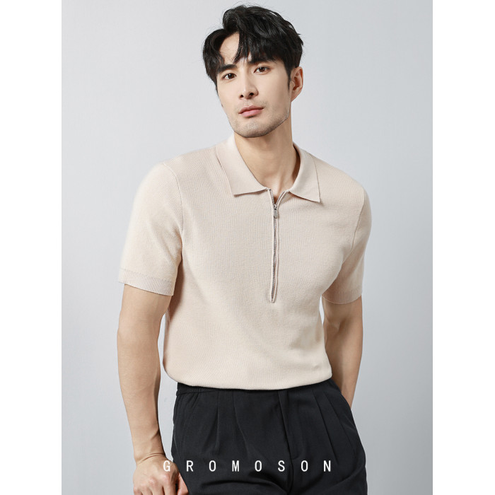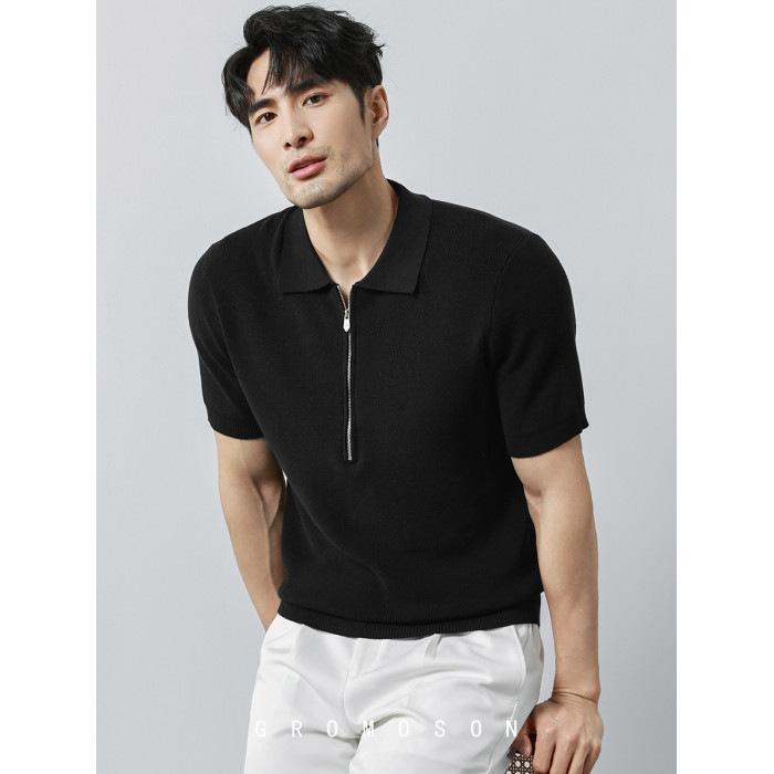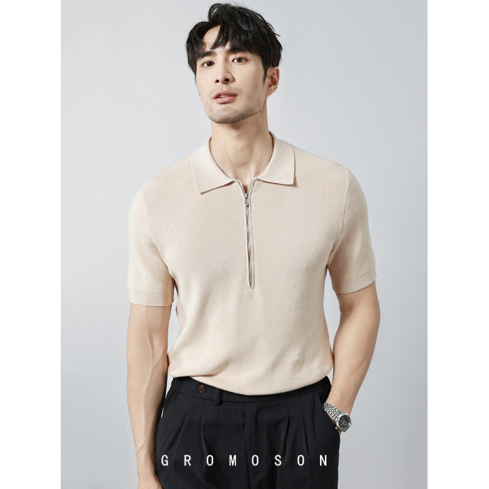 夏季透氣長絨棉 男士拉鍊翻領POLO衫商務吸汗免燙針織衫休閒男T恤