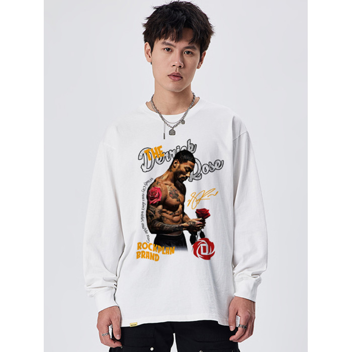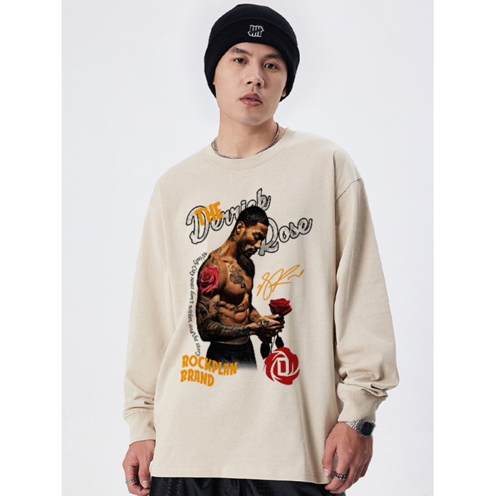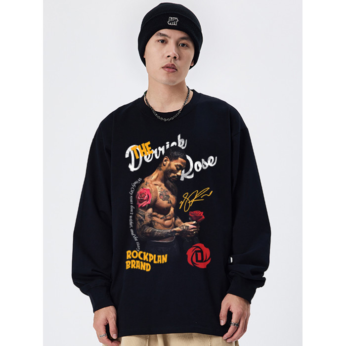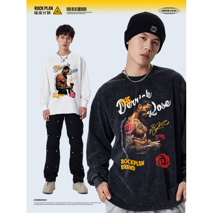 搖滾計劃球星羅斯風城玫瑰美式學生潮男T恤籃球運動衣vintage水洗