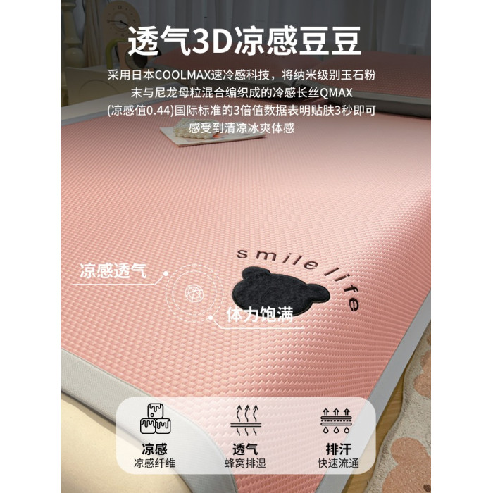 【升級款單涼蓆】八寶熊-粉A類涼感冰豆豆+三明治透氣網眼