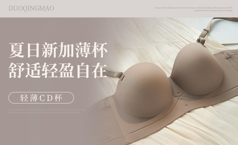 半杯內衣女士夏薄款小胸聚攏顯大防下垂無痕無肩帶文胸多情貓官方