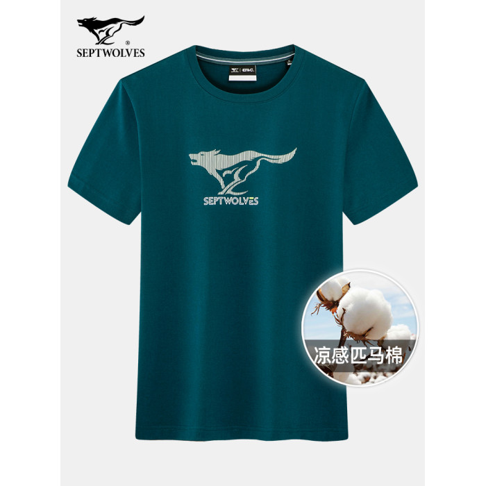 七匹狼男t恤短袖夏季新款涼感透氣半袖百搭休閒奔狼印花純棉上衣