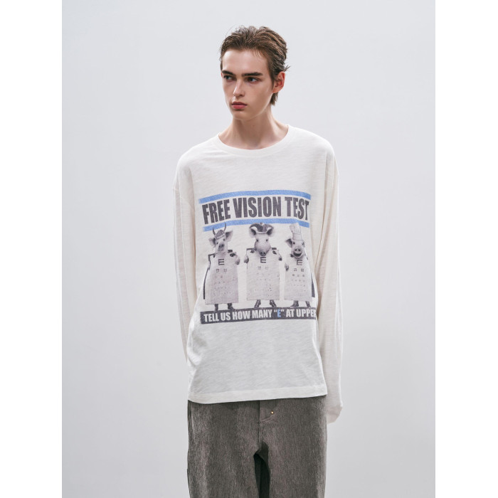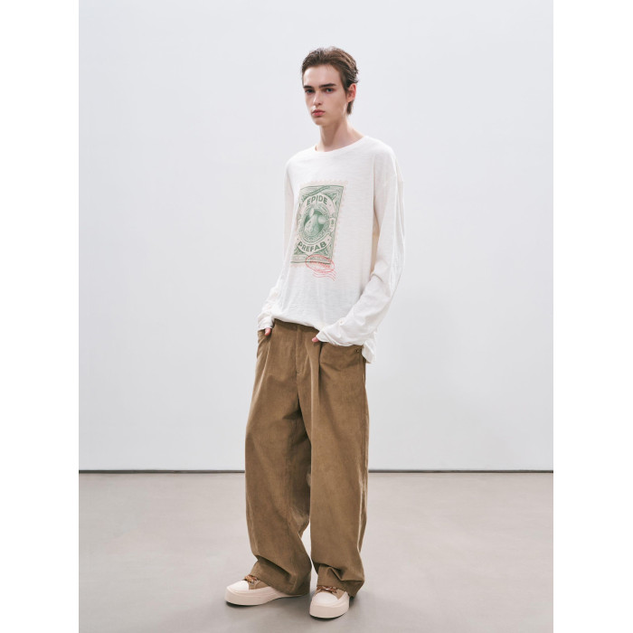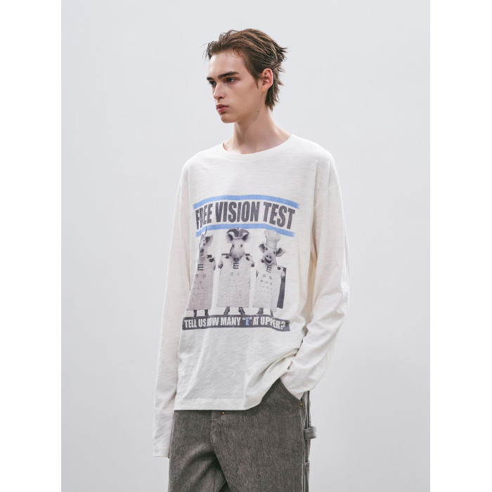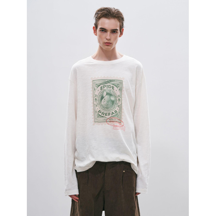 Epide Prefab復古圖案印花做舊薄款白色潮流寬松舒適長袖男T恤TEE