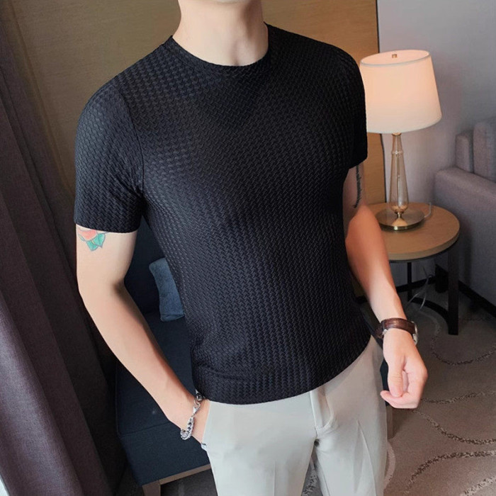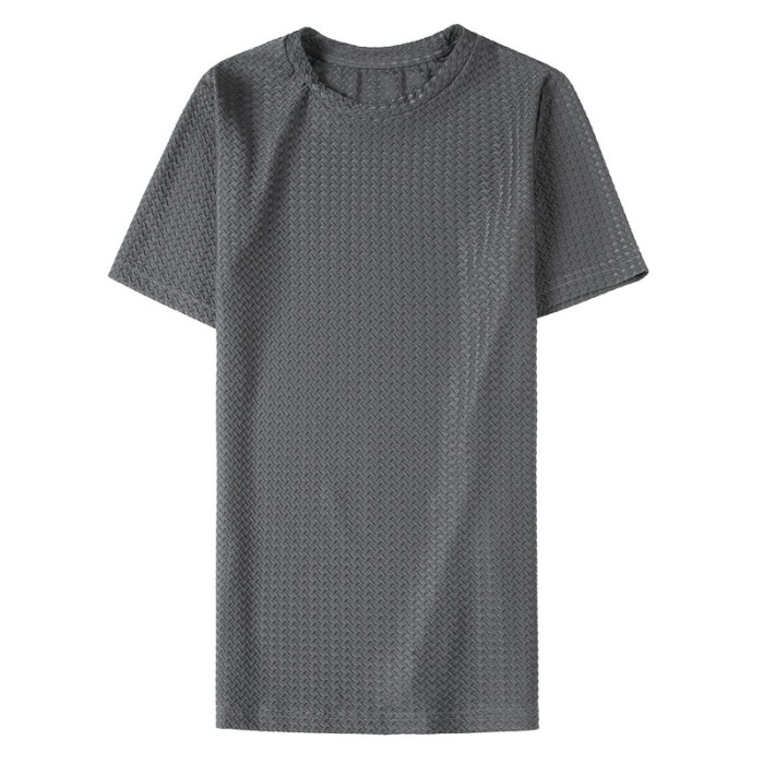 夏季薄款圓領短袖男T恤男韓版修身彈力冰絲透氣衣服免燙打底體恤
