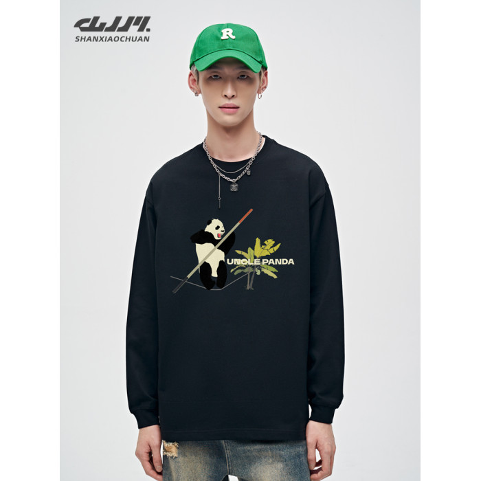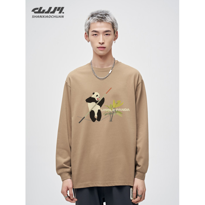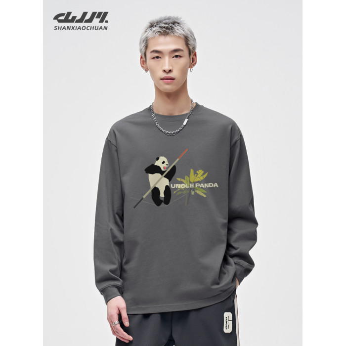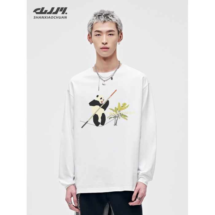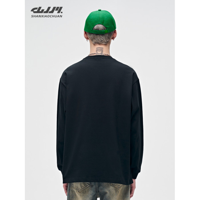 山小川男t恤長袖秋季純棉2025新款男裝體恤秋冬內搭男士打底衫