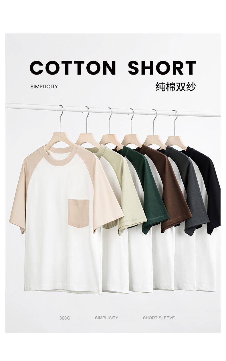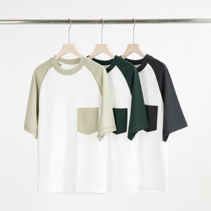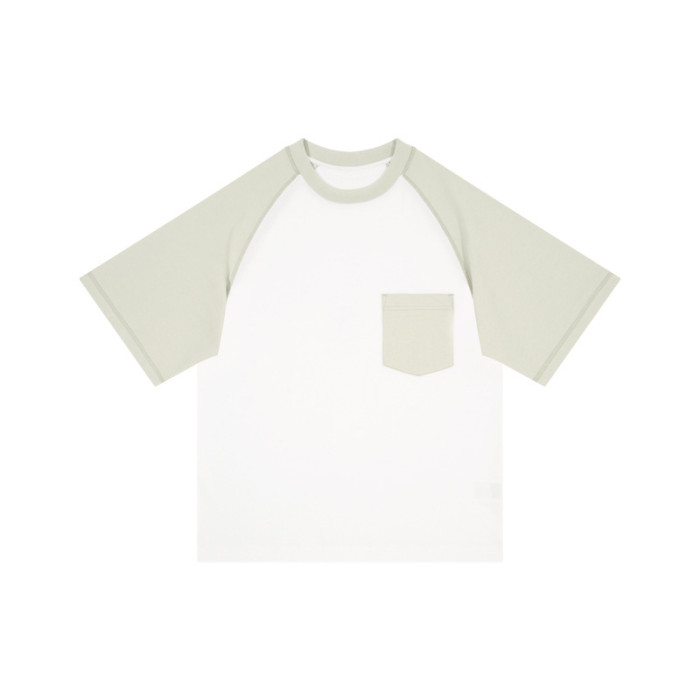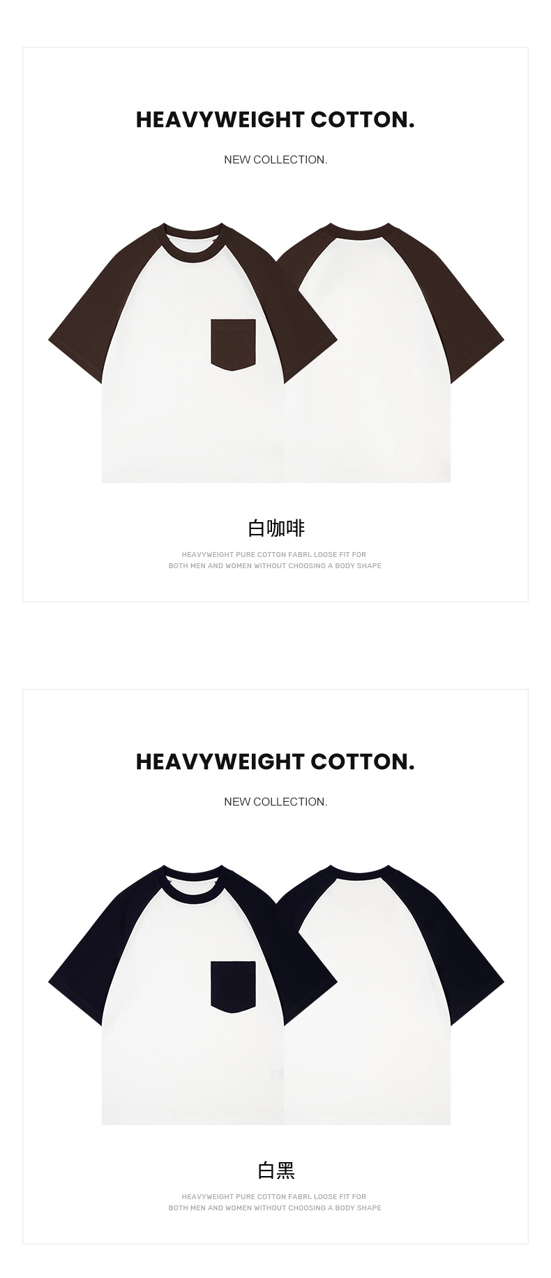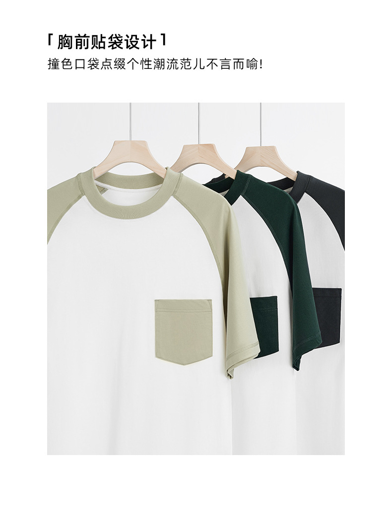 日系風純棉插肩短袖2024春夏新款撞色百搭女上衣口袋設計感男t恤