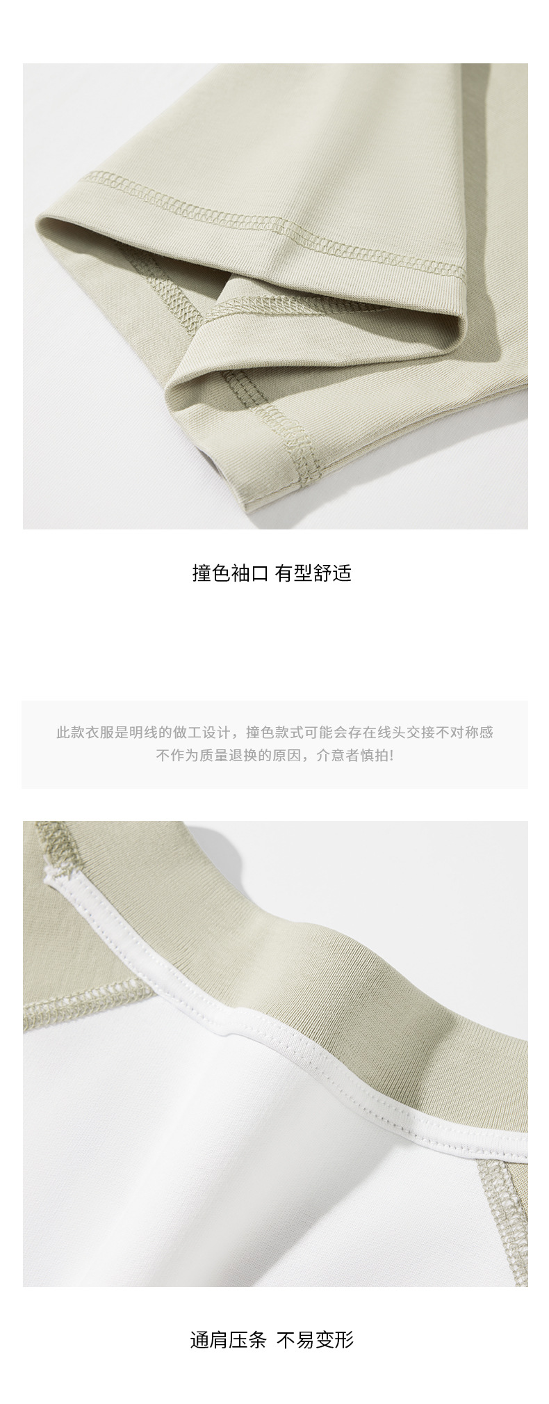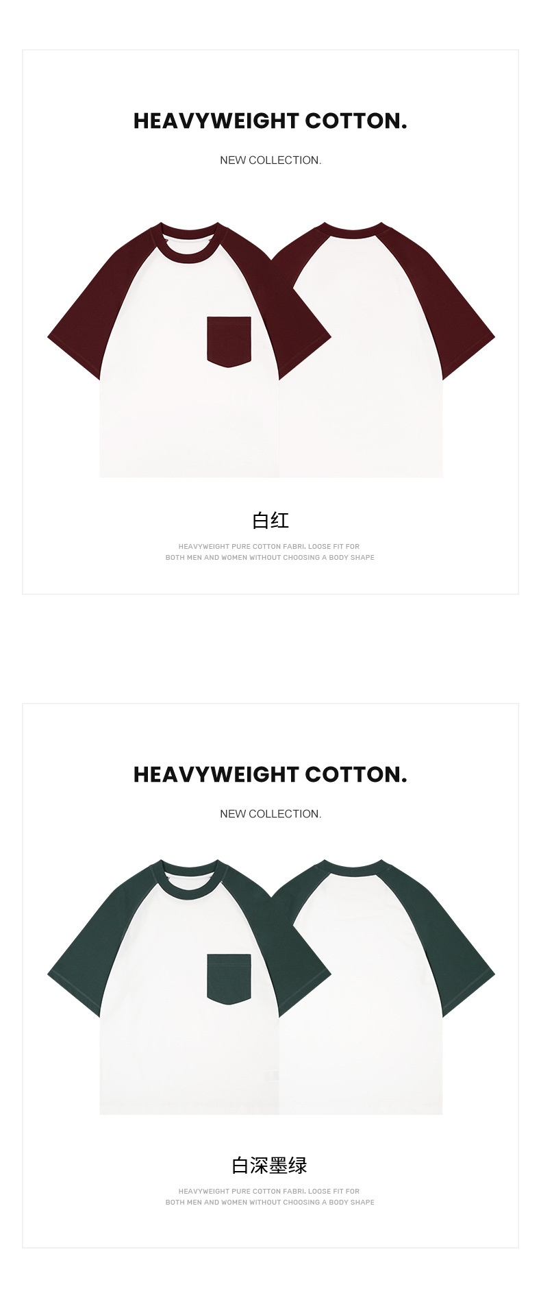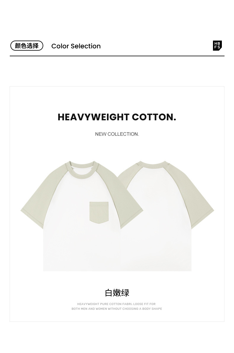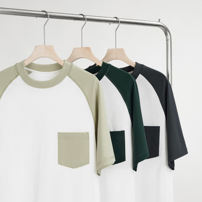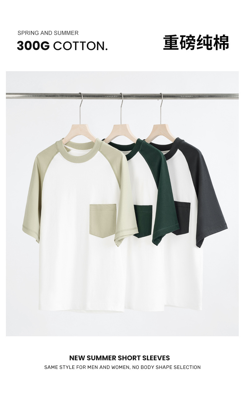 日系風純棉插肩短袖2024春夏新款撞色百搭女上衣口袋設計感男t恤