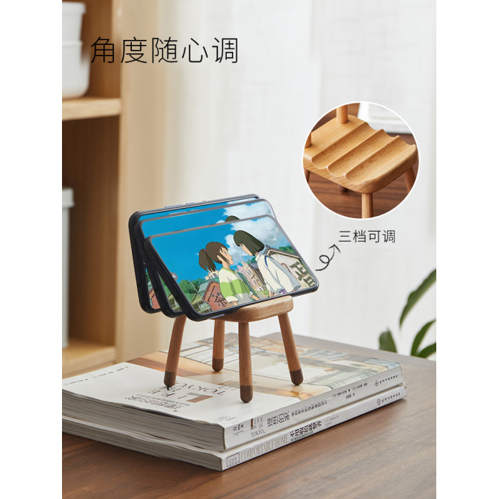 木質桌面懶人手機支架板凳創意可愛平板ipad簡約通用可調節手機座