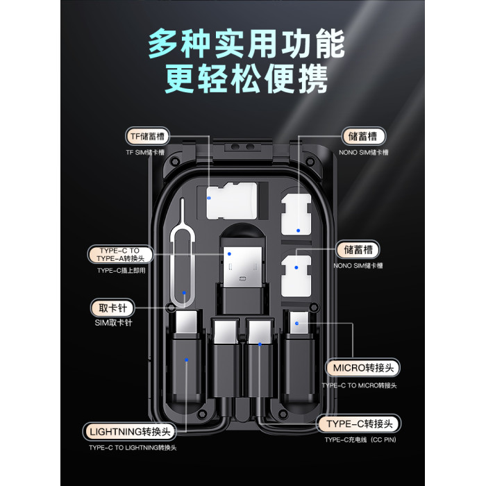 budi多功能充電線65W快充數據線十合一萬能通用型手機支架轉換頭