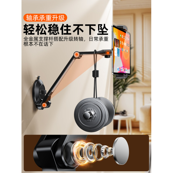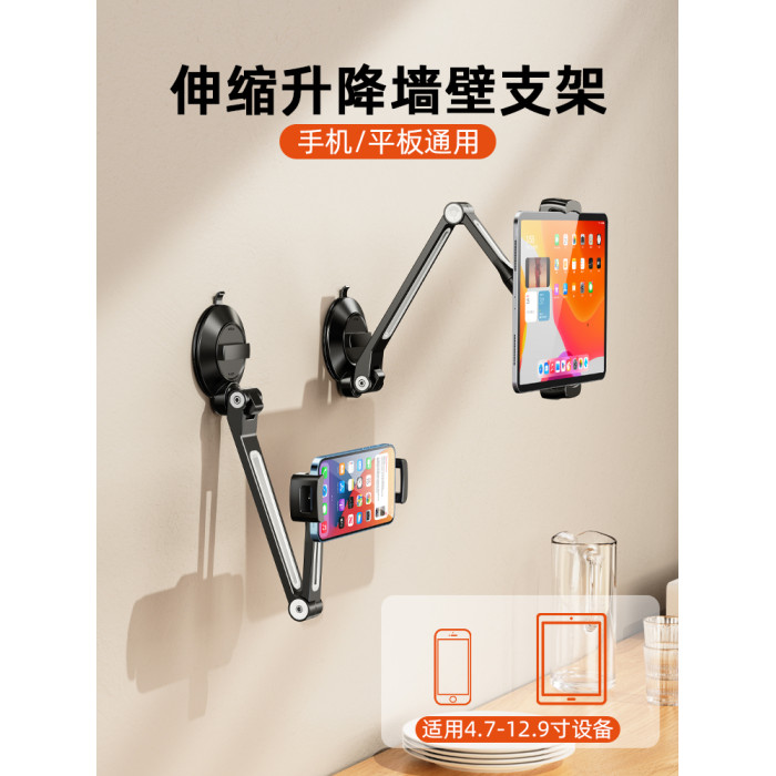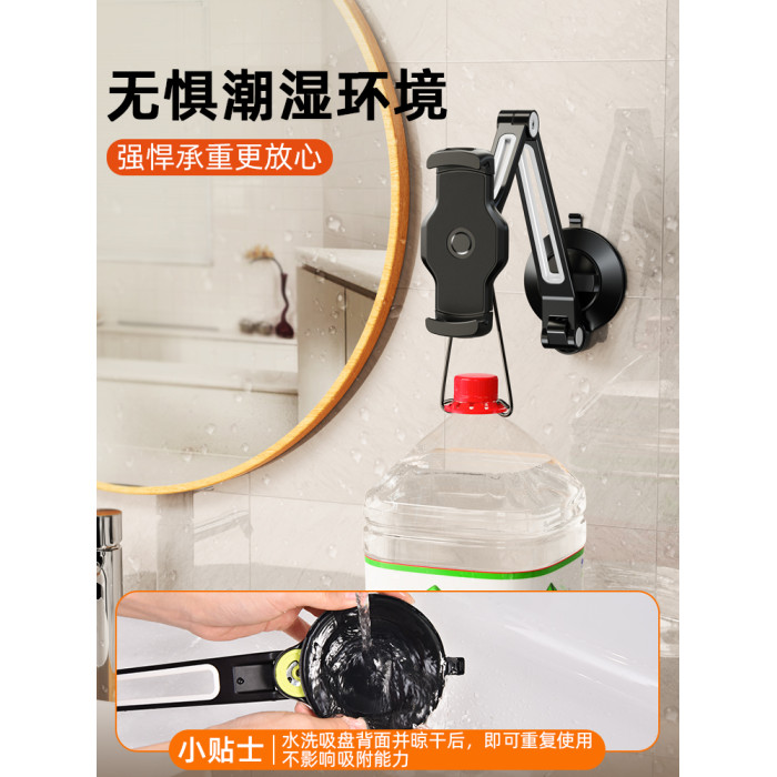 吸盤式牆上平板手機支架浴室可伸縮折曡廚房真空磁吸牆面壁掛固定厠所洗手間鏡子玻璃貼上牆壁ipad床頭夾掛牆