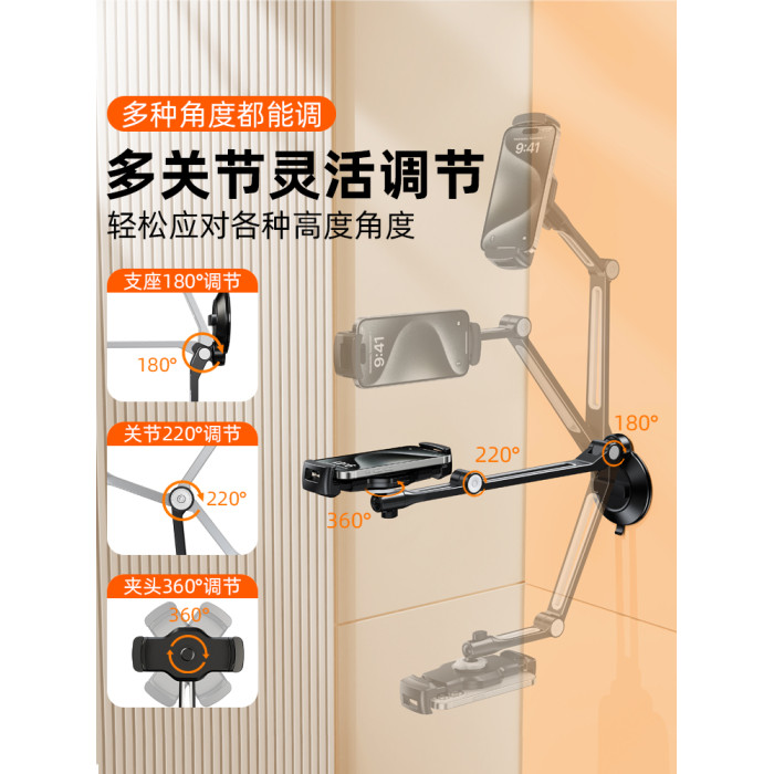 黑色【單吸磐長臂】角度可調節旋轉/手機平板通用