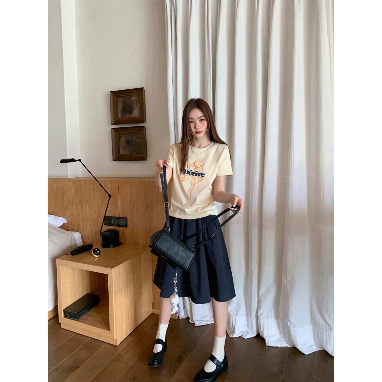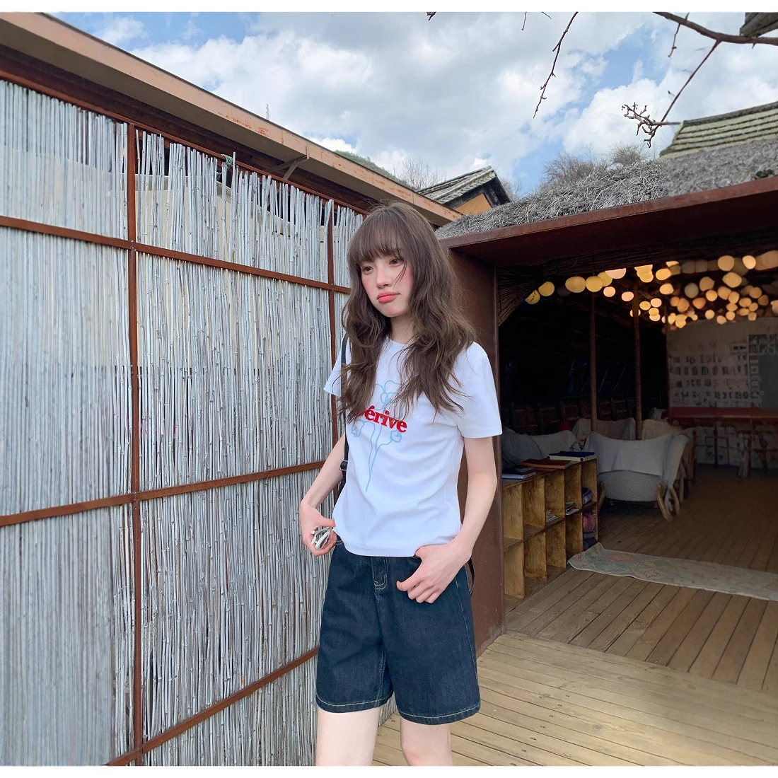 原創藝術感刺綉印花短袖t恤女夏設計感
