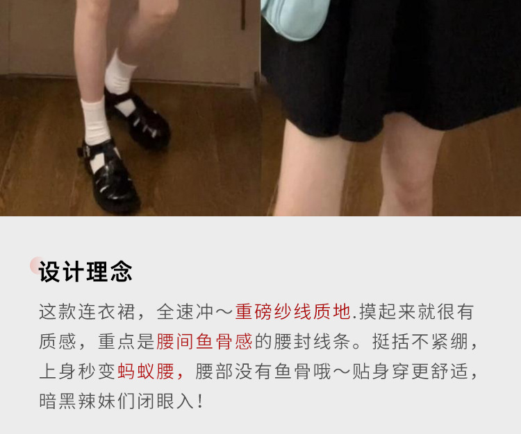 黑色魚骨連衣裙女夏新款收腰赫本風小黑裙修身短款小個子a字裙子