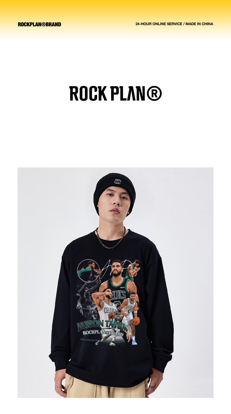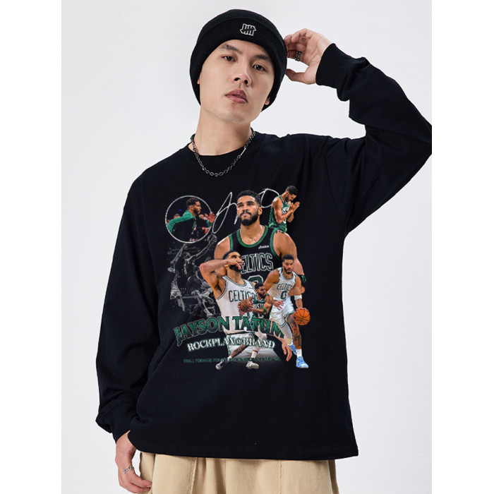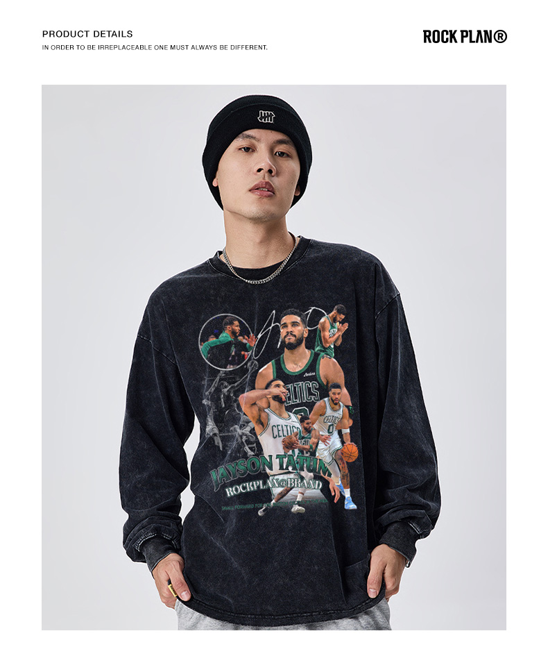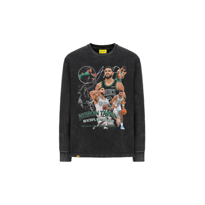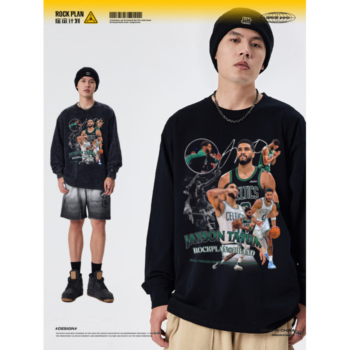 搖滾計劃美式球星塔圖姆男T恤籃球街頭秋冬長袖圓領學生復古做舊
