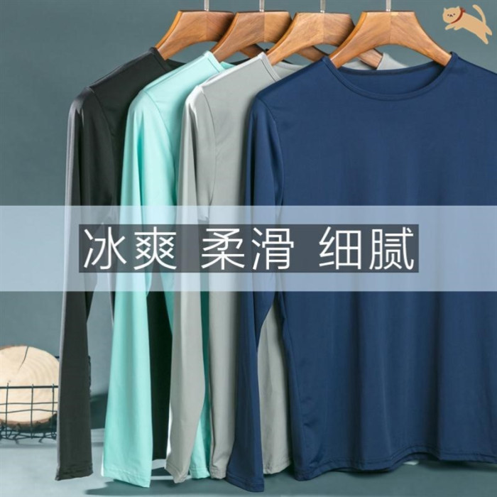 農民工乾活衣服工地夏裝冰絲長袖男簡約薄款速乾透氣W打底衫男T恤