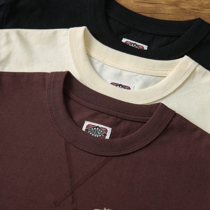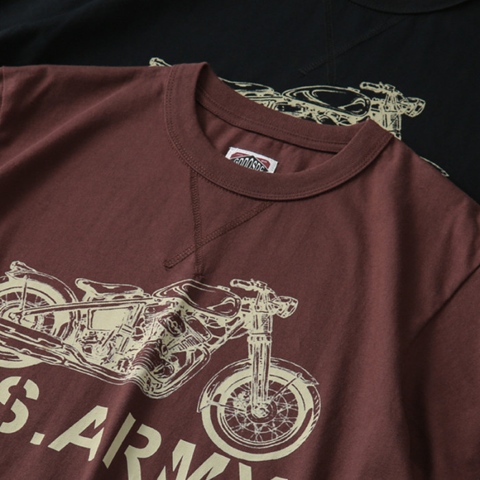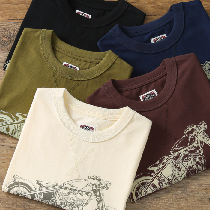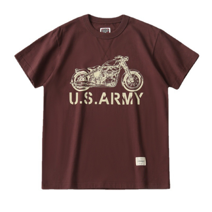 阿美哢嘰機車印花倒三角210克洗水美式復古純棉男裝短袖男t恤