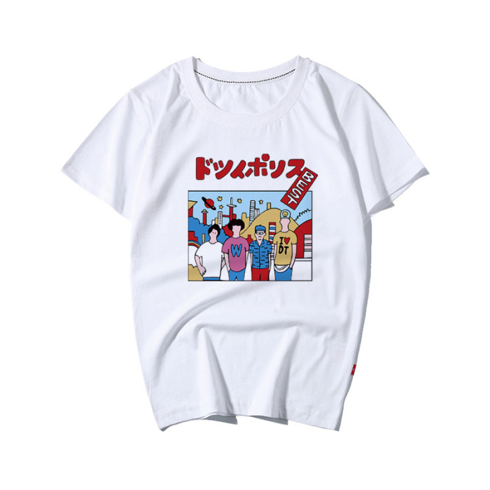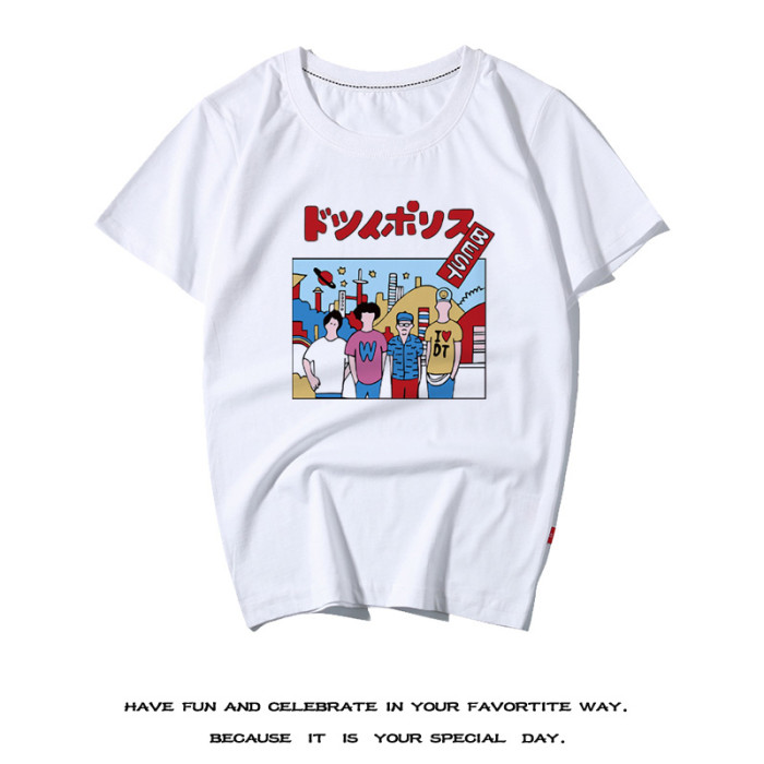 新款校園復古型男T恤衫復古日本風T恤韓風日系半袖卡通人物短袖夏