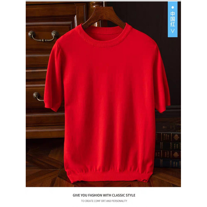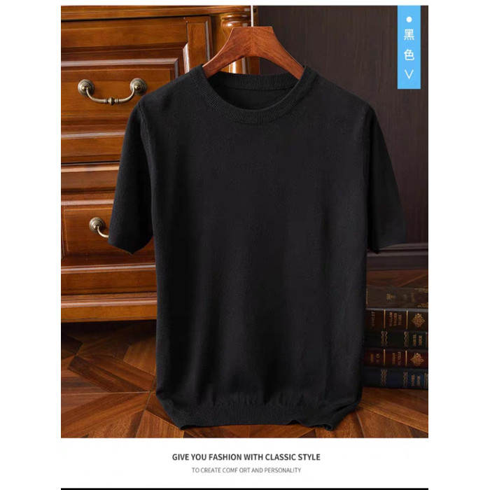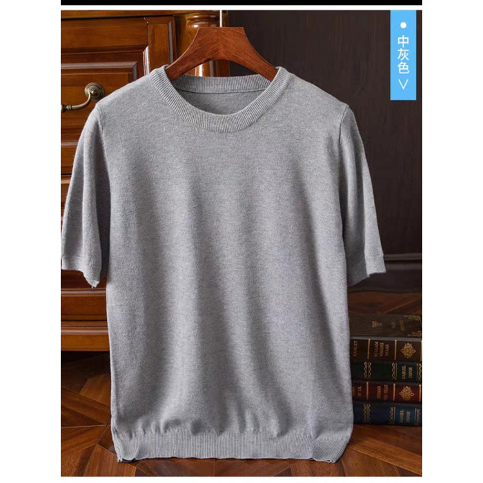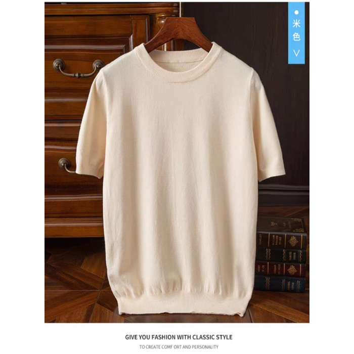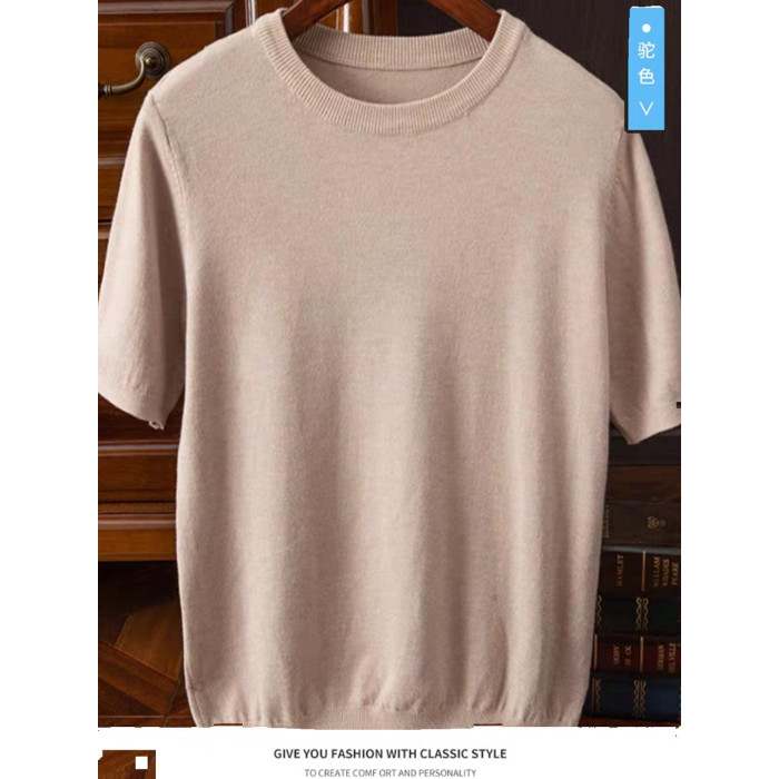春秋新款圓領羊毛針織短袖男T恤毛衣寬松打底休閒半袖外穿五分袖